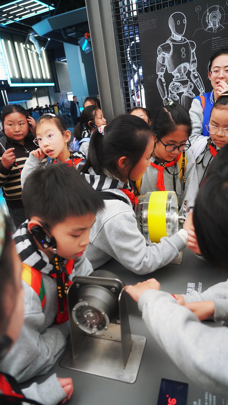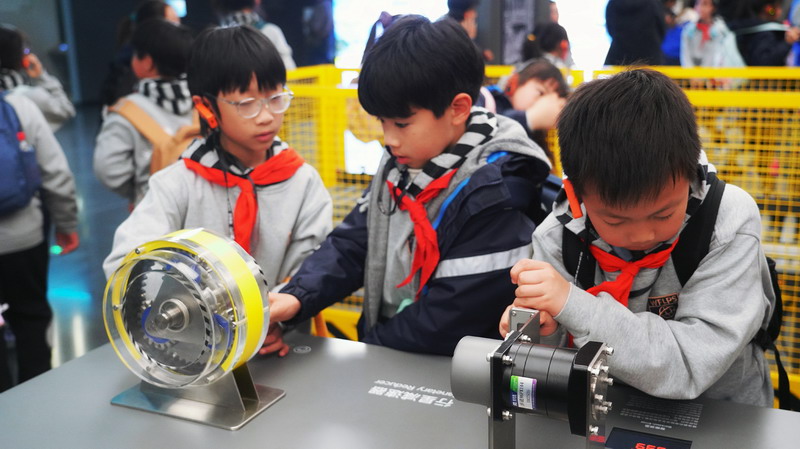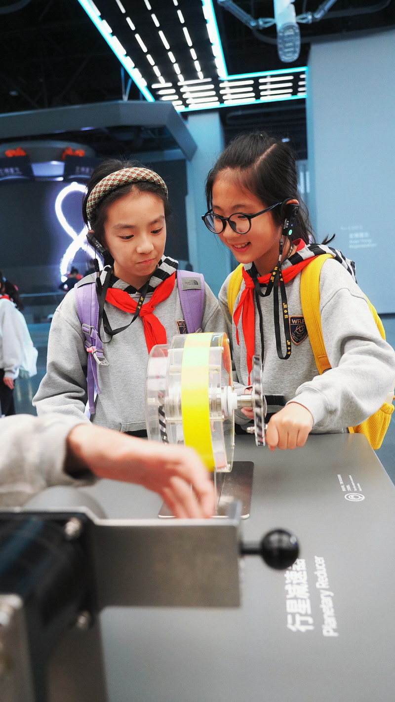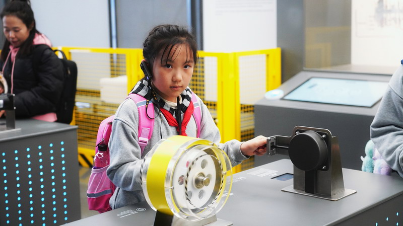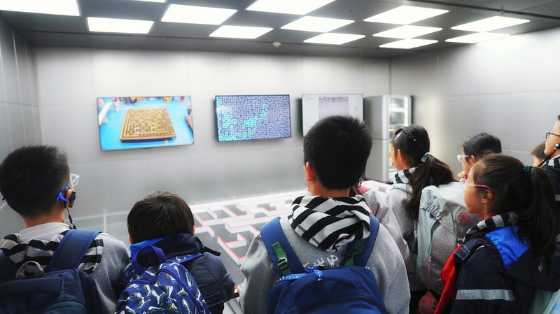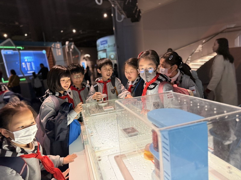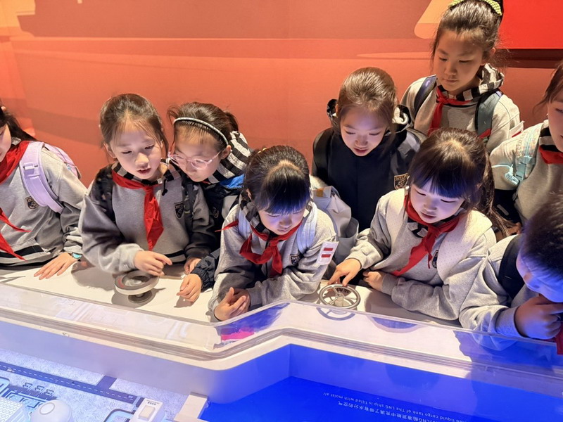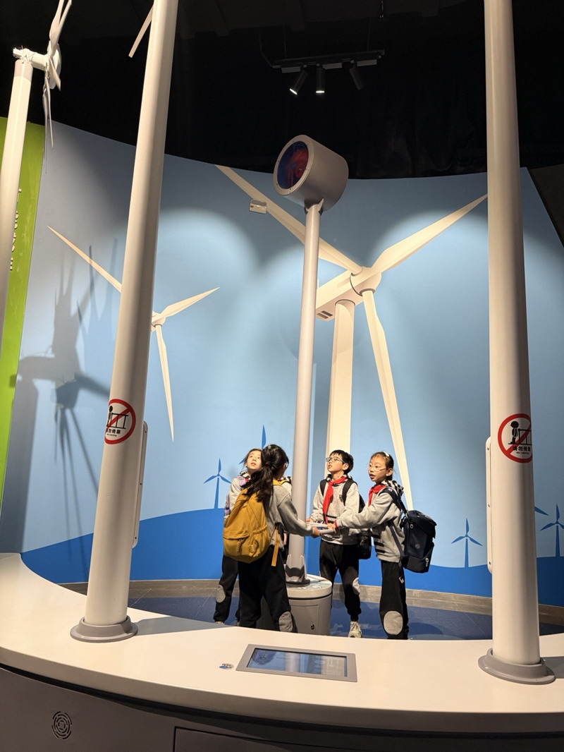 观影结束后,同学们在老师的带领下分组参观科技馆特色展区。在“飞行探秘”展区,同学们体验VR设备穿越回上世纪30年代的上海,感受早期民航的发展历程;在“明日行者”展区,与智能机器人“灵犀X1”互动交流,探索人工智能的无限可能;“材料魔方”展区的超导赛车表演,让同学们直观领略超导材料的神奇特性;“共生星球”展区的互动游戏,更让同学们在趣味体验中理解人类与地球的共生关系。各展区丰富的互动展项,让同学们动手实践、大胆探索,在玩中学、学中思,充分感受科技的趣味性与实用性,也在观察中思考科技如何改变生活、解决实际难题。