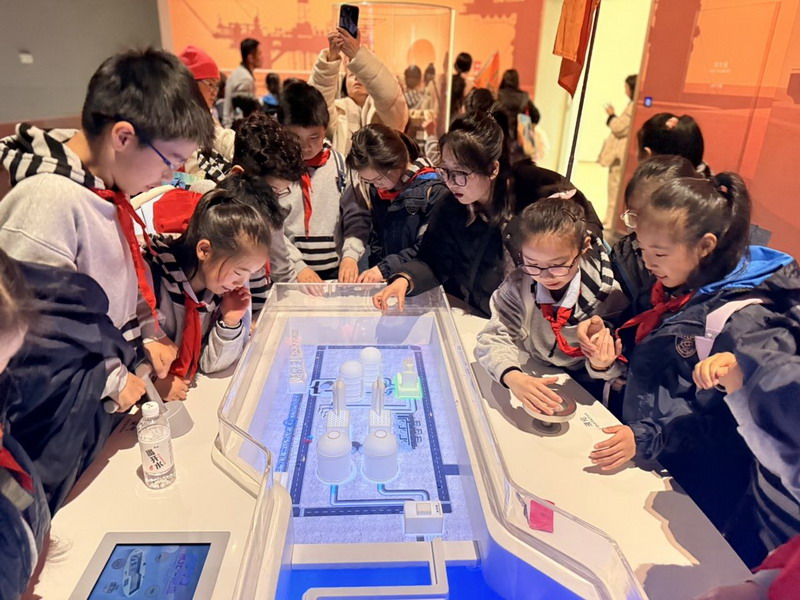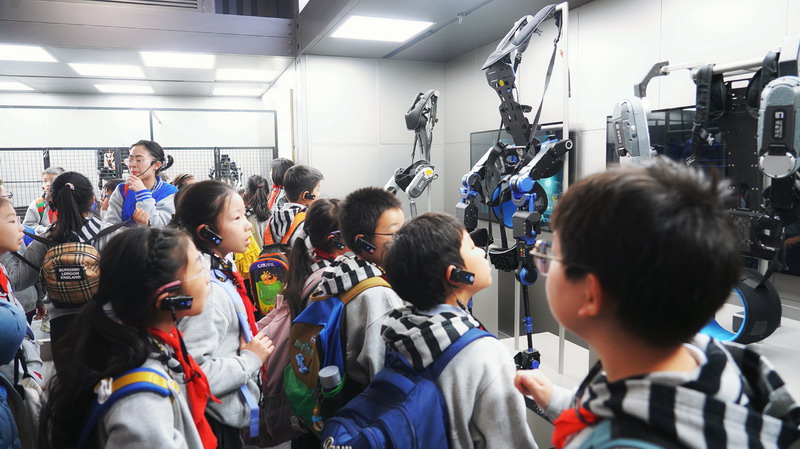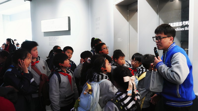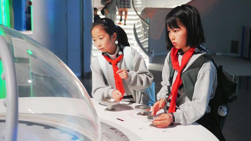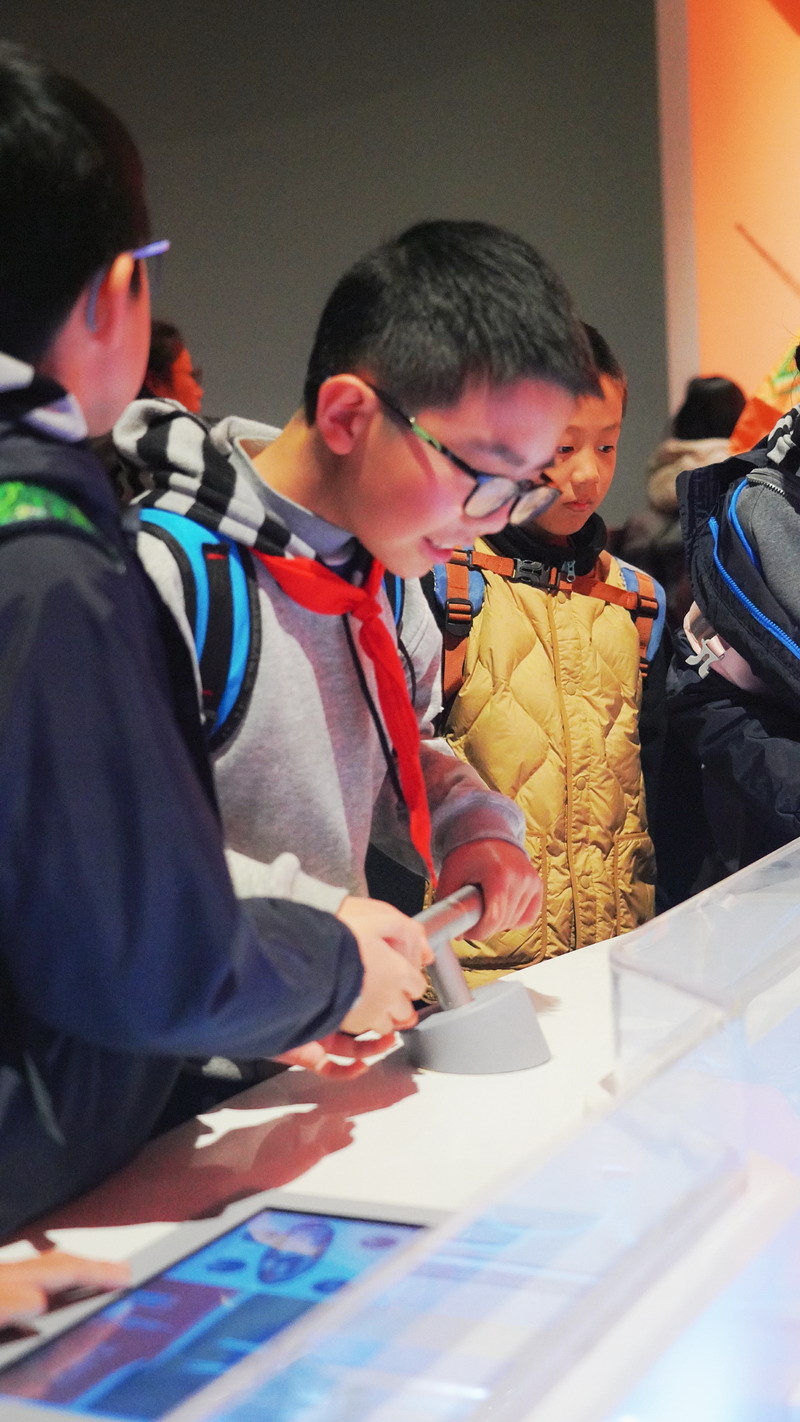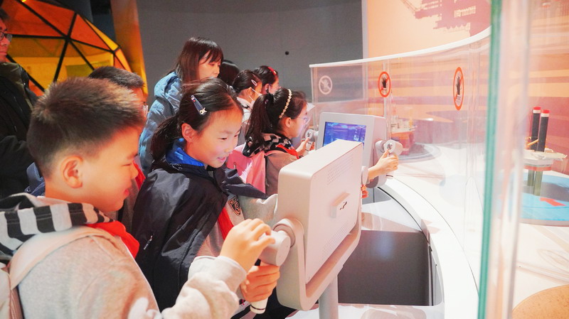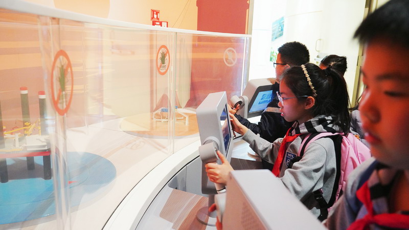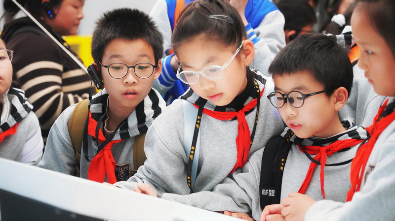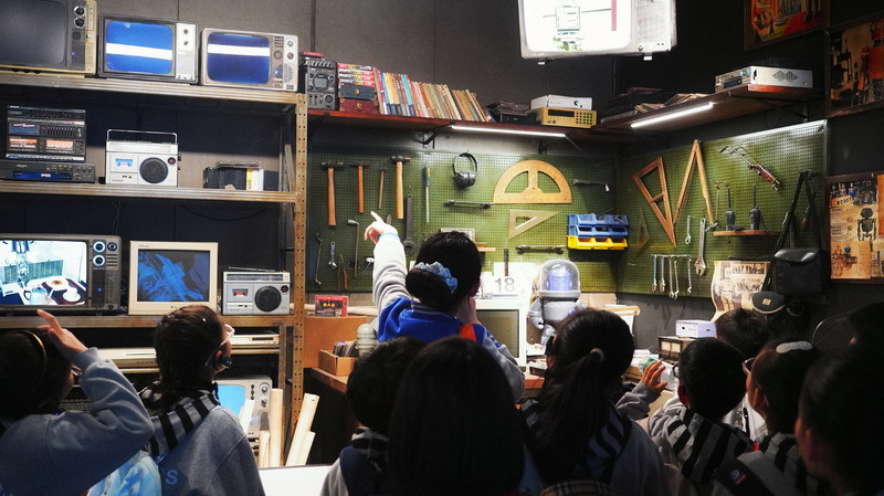 观影结束后,同学们在老师的带领下分组参观科技馆特色展区。在“飞行探秘”展区,同学们体验VR设备穿越回上世纪30年代的上海,感受早期民航的发展历程;在“明日行者”展区,与智能机器人“灵犀X1”互动交流,探索人工智能的无限可能;“材料魔方”展区的超导赛车表演,让同学们直观领略超导材料的神奇特性;“共生星球”展区的互动游戏,更让同学们在趣味体验中理解人类与地球的共生关系。各展区丰富的互动展项,让同学们动手实践、大胆探索,在玩中学、学中思,充分感受科技的趣味性与实用性,也在观察中思考科技如何改变生活、解决实际难题。