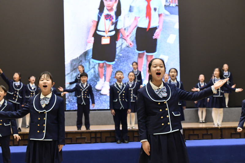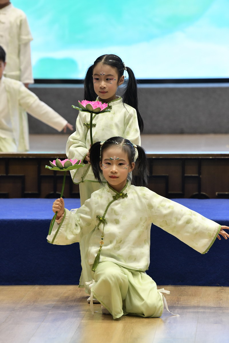 晚会的歌声响起,五年级的哥哥姐姐们,如同开学第一天那般牵着一年级孩子们的手走上台。他们脸上带着甜甜的笑意,清亮又温暖的歌声便流淌开来。歌声里裹着对弟弟妹妹的欢迎,藏着对新朋友的祝福,每一个音符都像小太阳一样,暖融融地落在台下每一个小朋友的心上。