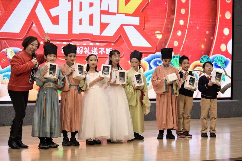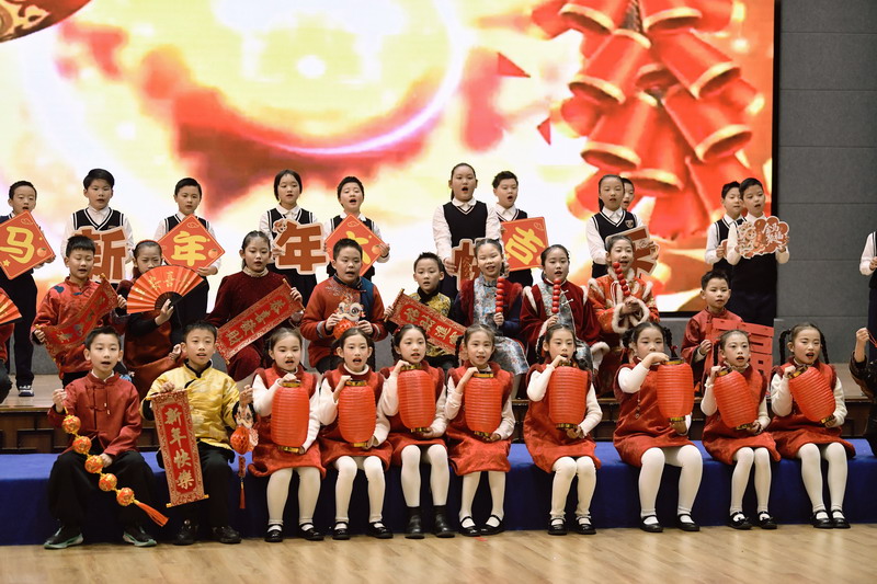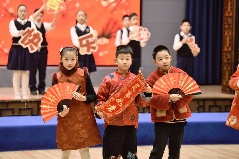 活动伊始,四位主持人闪亮登场,以真挚的语言回顾了过去一年的成长点滴,并对莅临现场的校长与老师们表示热烈欢迎。四(1)班同学带来的经典诗词表演《元日》率先点燃全场,孩子们身着节日盛装,以饱满的演绎传递出浓浓的年味,为整场活动拉开精彩序幕。