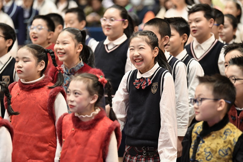 压轴节目由四(3)班呈现《一蓑烟雨任平生》、《如愿》,孩子们以坚定信念与饱满热情,诠释对未来的憧憬与无畏前行的勇气,赢得满堂喝彩。