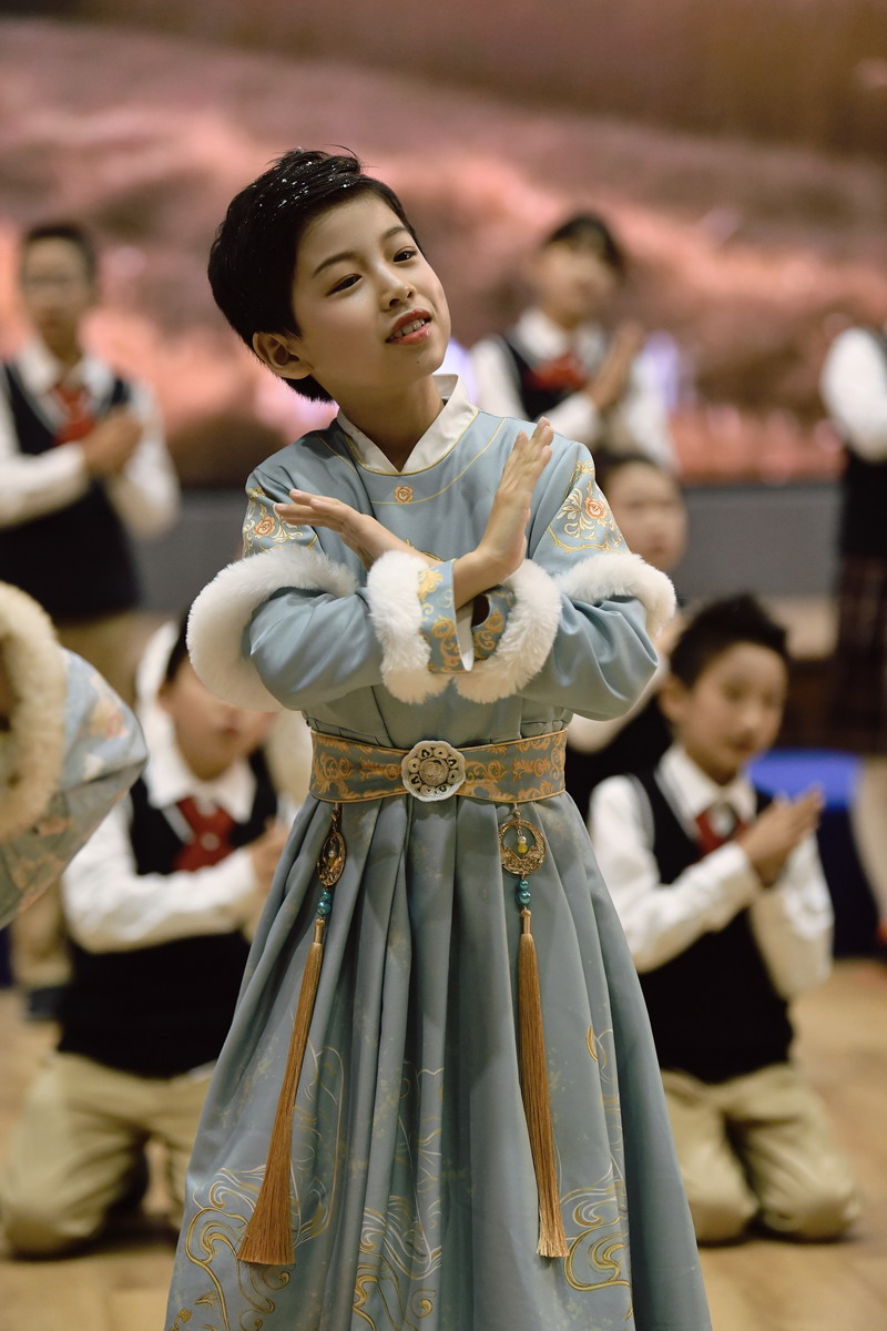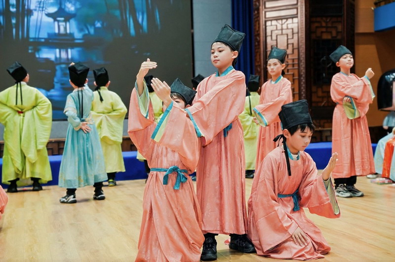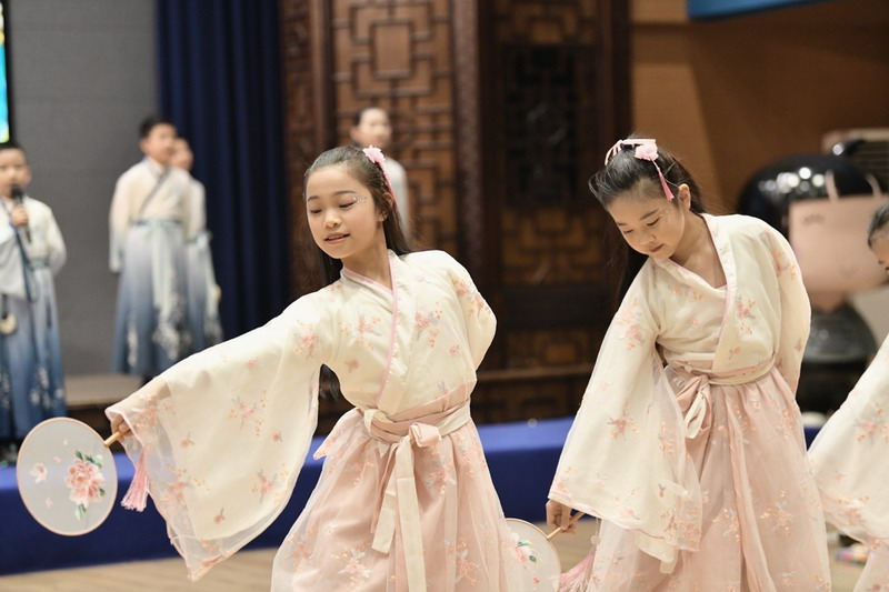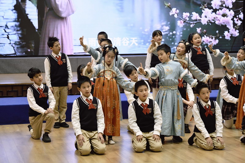 四(2)班同学演绎的《24节气歌》,以优美韵律展现时节流转之美,让全场沉浸在传统文化的隽永韵味中。