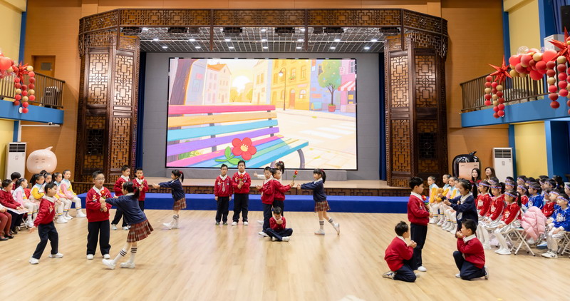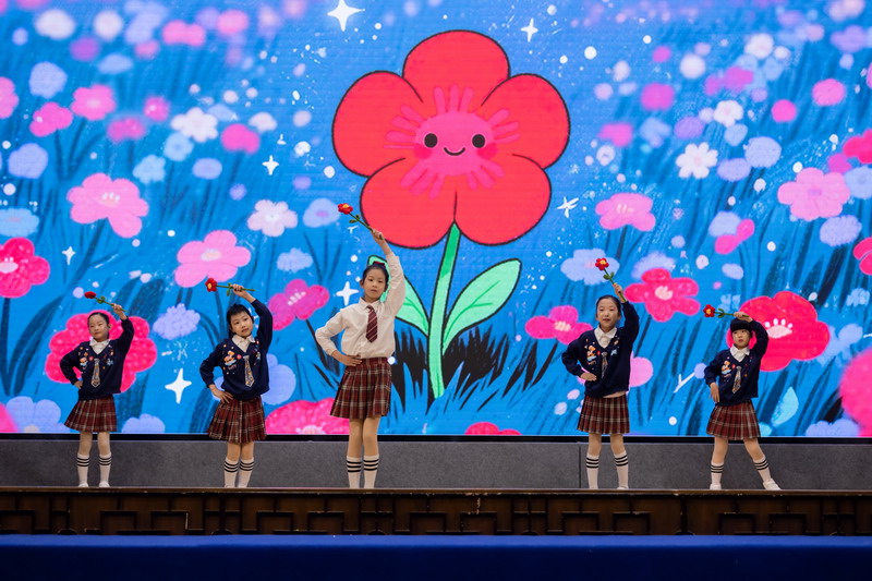 随后,舞台成为传递心意的信笺。二1班的歌舞《裹着心的光》,以童声与舞姿诉说老师如春风、如暖阳般的陪伴;二3班的舞蹈《老师,我爱您》以稚嫩却坚定的动作,演绎出对老师那份严慈相济的感激。