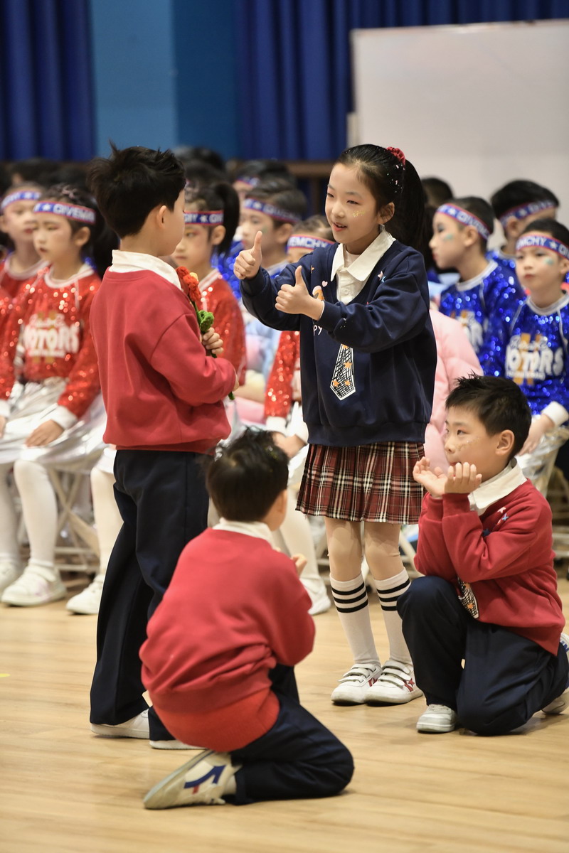 二2班的情景歌舞《送你一朵小红花》真挚动人,一朵小红花,凝聚的是老师们的慧心与爱心,绽放的是孩子们灿烂的笑颜;英语chants与歌曲表演更以跨语言的真诚,向老师们道出一声声“Thank you teachers!”,表达了纯真而炽热的感恩之心。