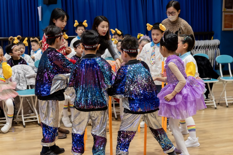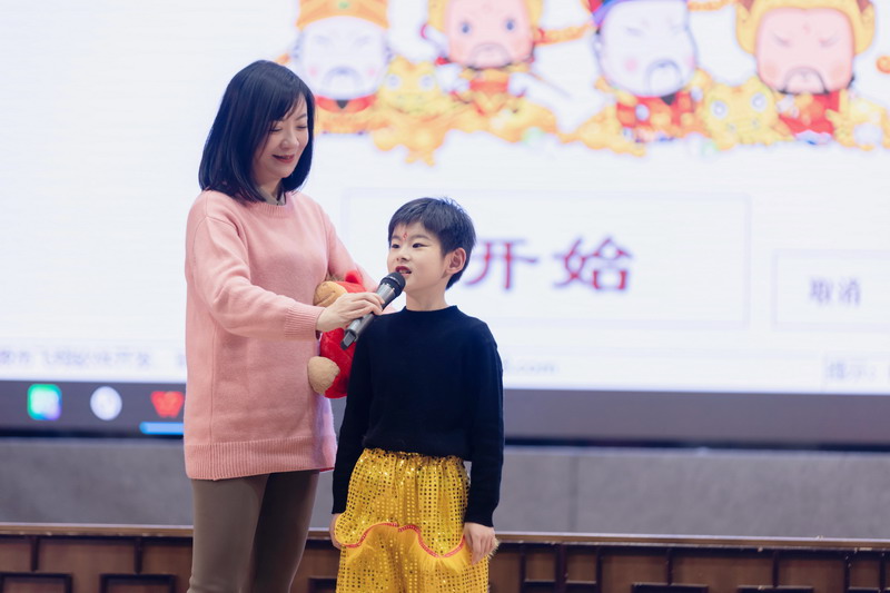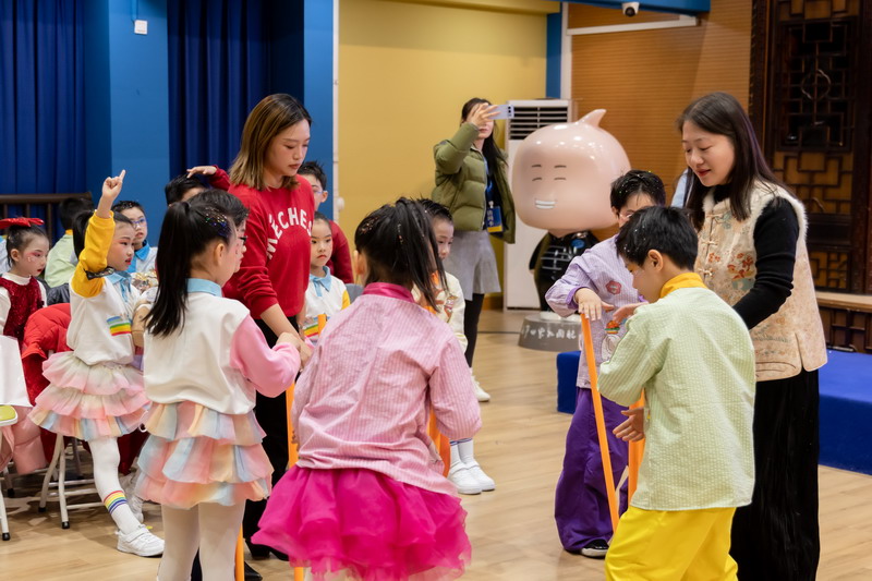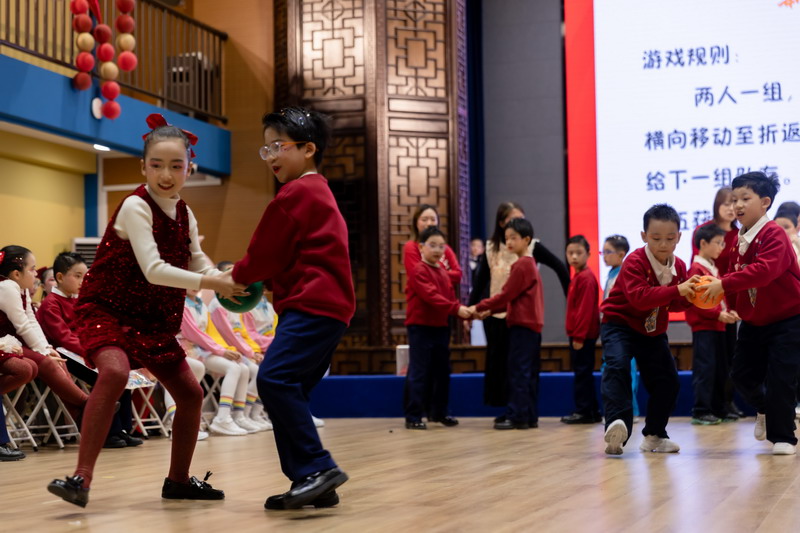 游戏环节将活动推向新的高潮。在老师们的带领下,“新年福气蹲”“新年好运接接接”“新年同心运福球”等游戏接连登场。师生全心投入,现场笑声迭起,协作与默契在游戏中悄然凝聚。“新年知识小达人”环节寓教于乐,孩子们积极竞答,展现广博见识,点亮智慧星光。