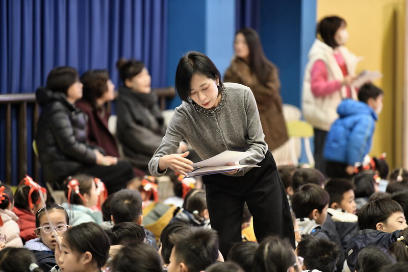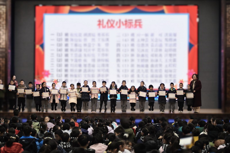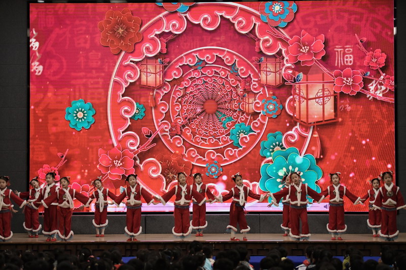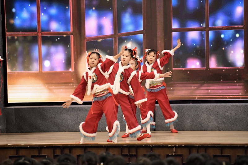 结业式在一年级同学们带来的开场节目《福气要来到》中拉开帷幕。孩子们身着喜庆服饰,踏着欢快节拍,用灵动的舞姿和灿烂的笑容传递着童真与喜悦,瞬间点燃了现场氛围。