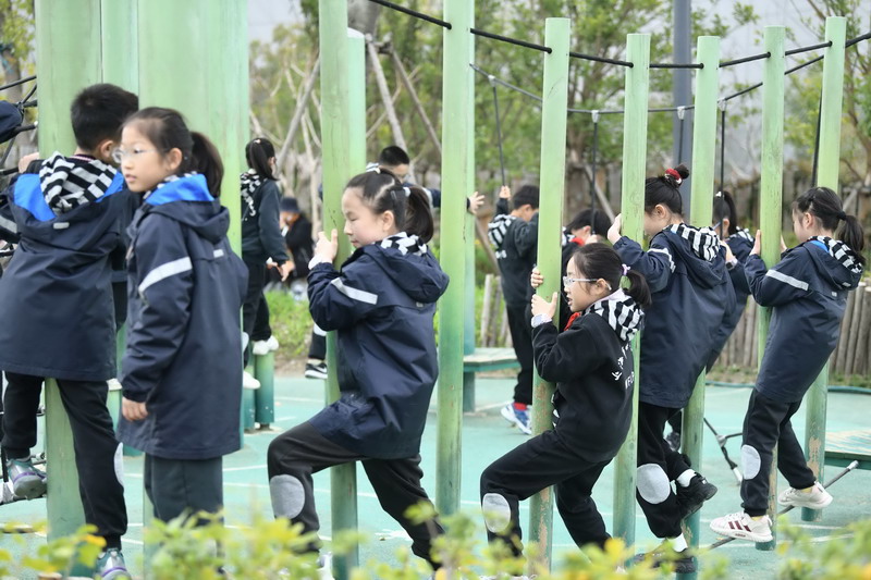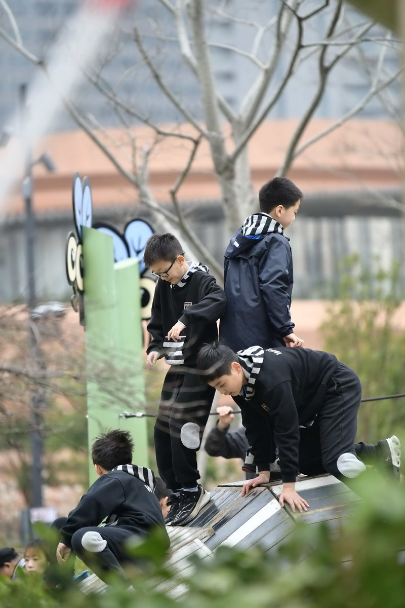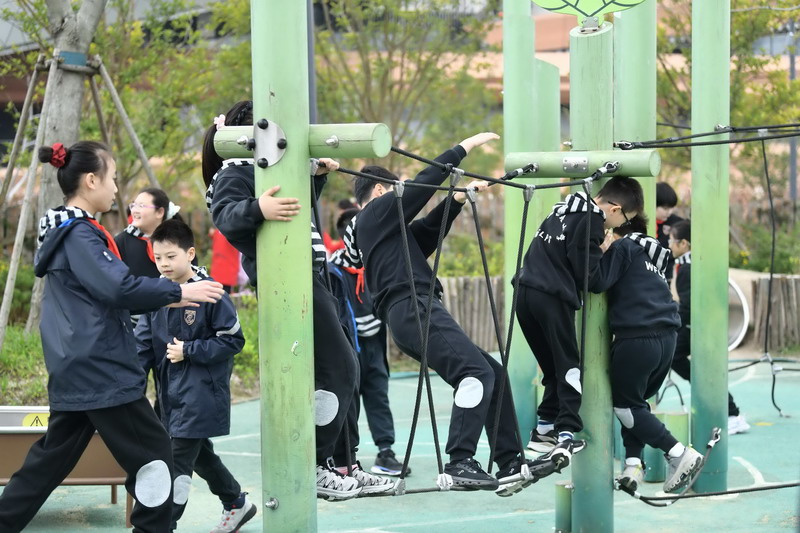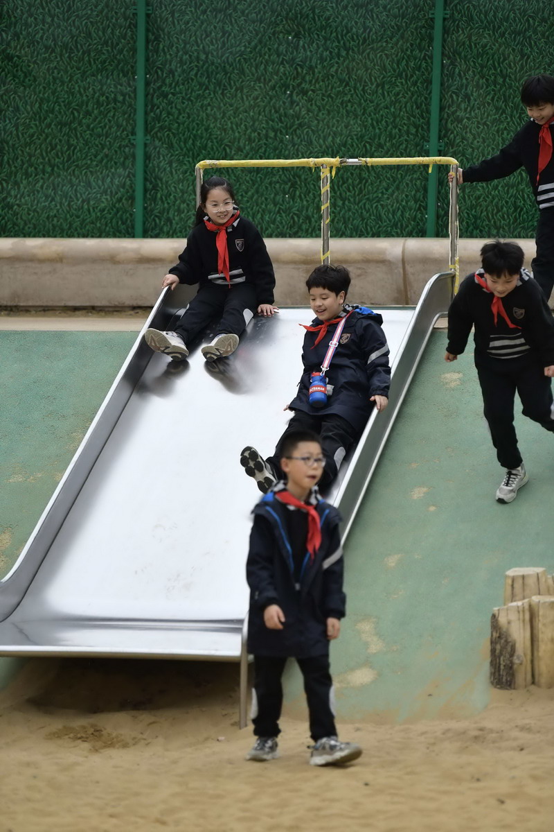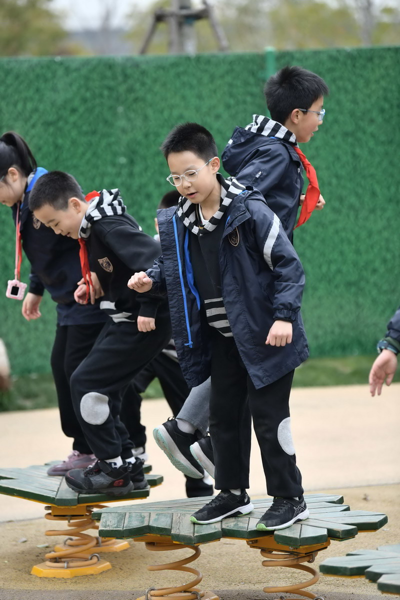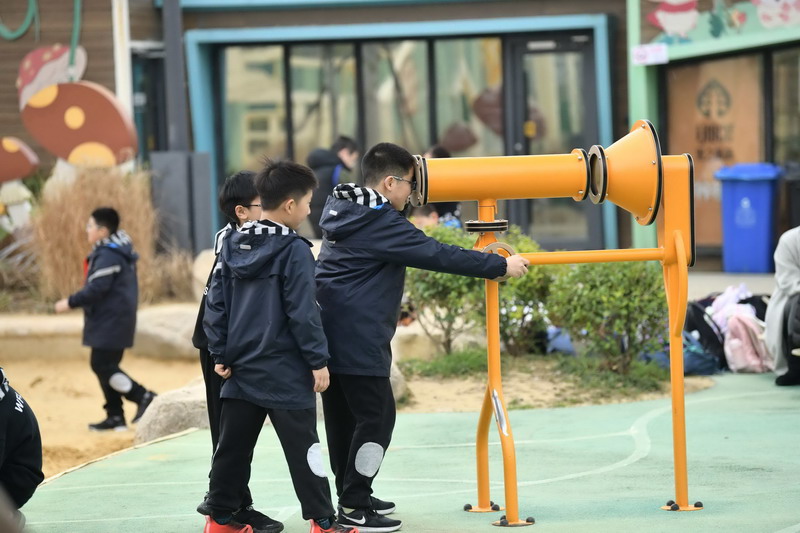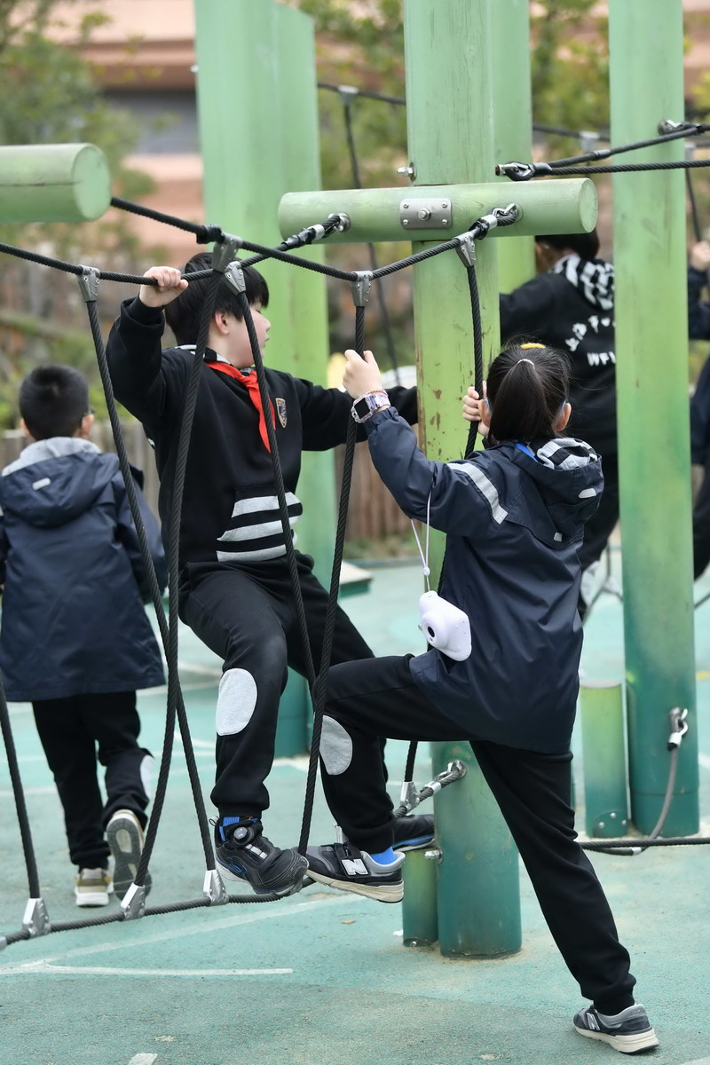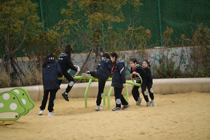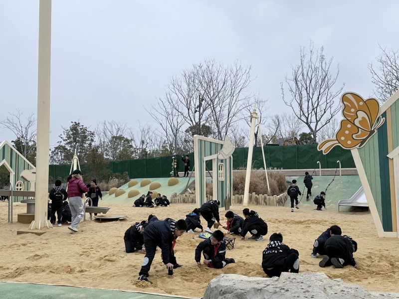 登山结束后,同学们来到双子山脚下的“蘑力乐园”尽情释放活力。大家有的玩沙嬉戏,有的攀爬儿童乐园设施,有的探究各类健身器材,在阳光下奔跑欢笑、尽情玩耍,释放满满的精力与童趣。