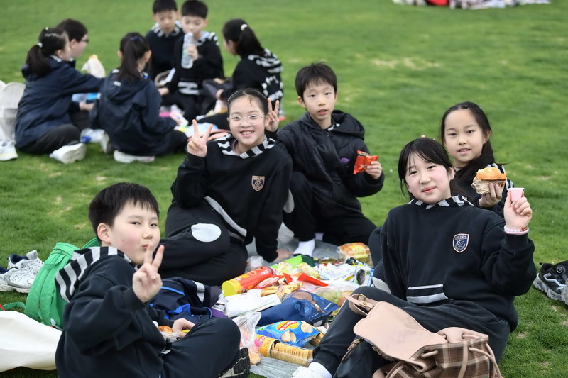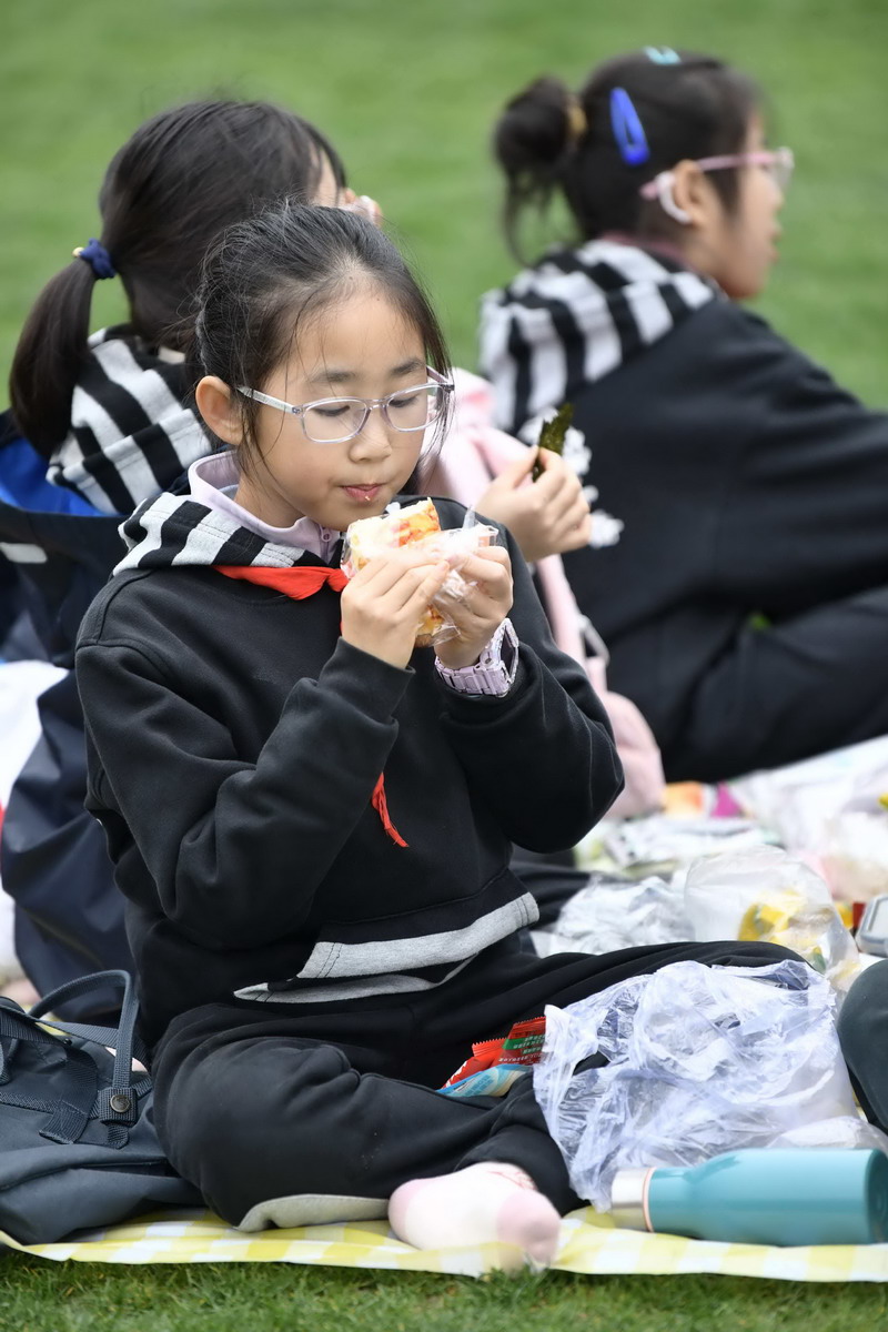 随后,同学们来到户外草坪,开启温馨的午餐时光。大家围坐在一起,分享美食、交流见闻,互相帮助、文明用餐,在欢声笑语中增进友谊,充分展现了四年级学子团结友爱、文明有礼的良好精神风貌。