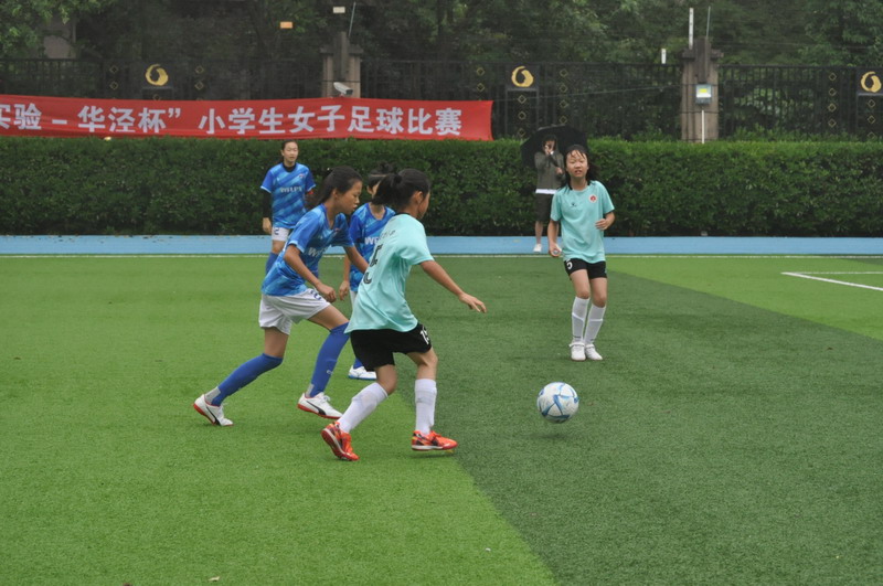 On June 2nd, the fine rain wove a hazy veil over the green field of the "Xuhui Experimental - Huajing Cup" Primary School Girls' Football Match. The showdown between the WFLPS International Division Girls' Football Team and the Xiangyang Yucai Primary School Girls' Football Team kicked off amidst the rain. Both teams had suffered defeats in their opening matches, so this game was not only a contest of skills and tactics but also a test of will and conviction.