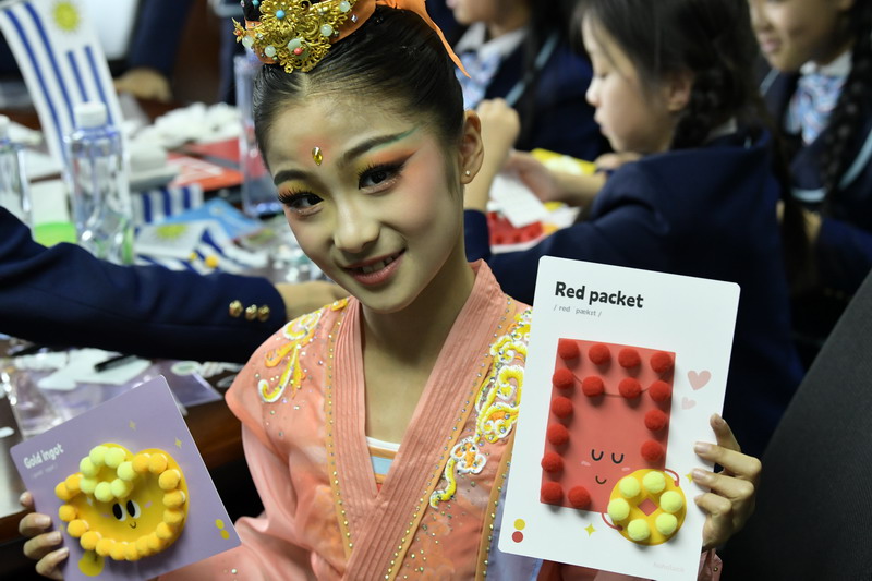 DIY craft session was a scene of bustling activity. Chinese cultural icons —