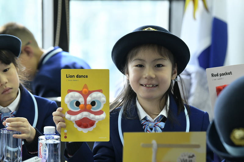手工DIY环节很热闹。中国的熊猫、舞狮,饺子、苍龙,在彩纸、画笔与巧思中相遇、结合。