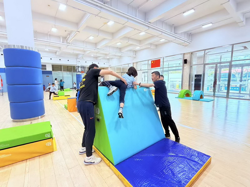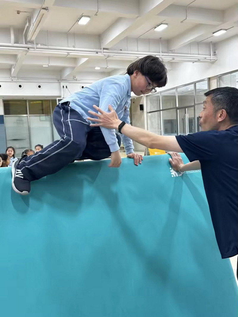 In the indoor parkour zone, students embraced challenge with growing confidence. Supported by coaches, they practiced climbing, jumping, and rolling, gradually overcoming hesitation and extending their limits. Each successful movement was met with cheers of encouragement, as students built coordination, agility, and courage. More importantly, they discovered the value of persistence and the excitement of pushing beyond what once felt difficult.