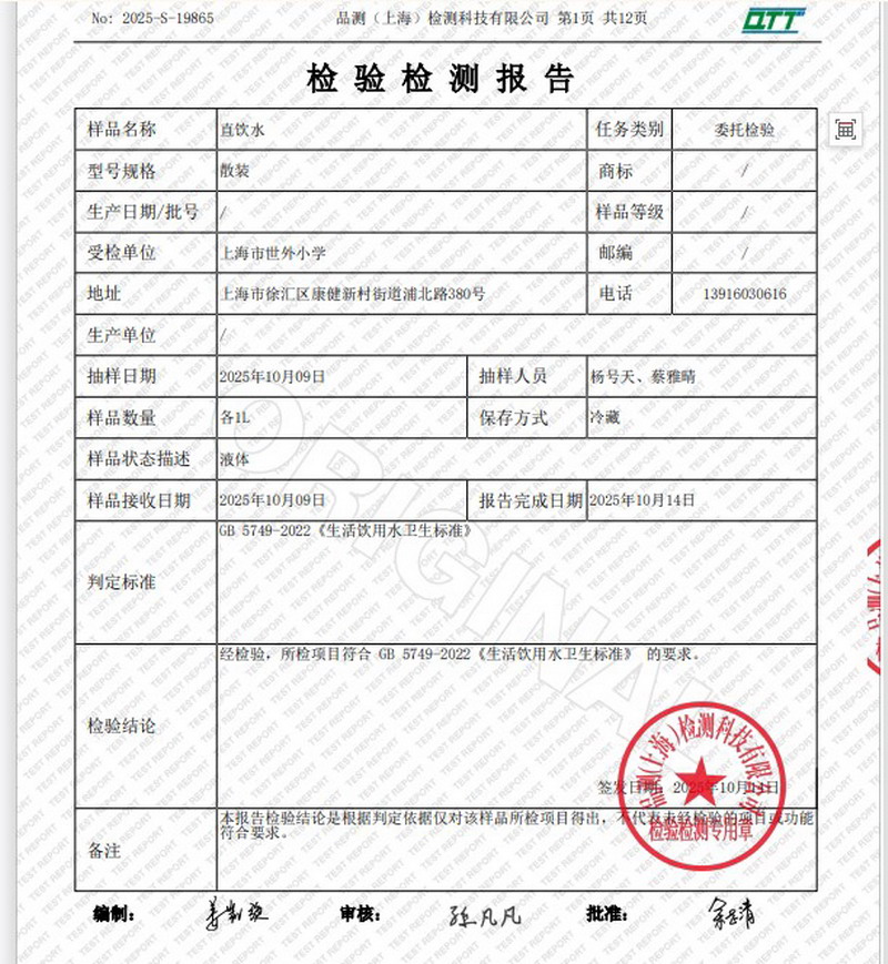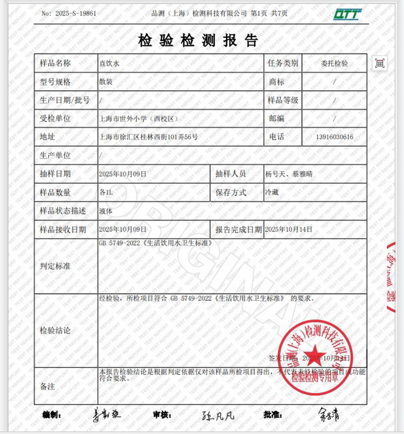 2025年10月水质月检报告