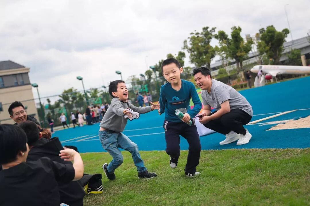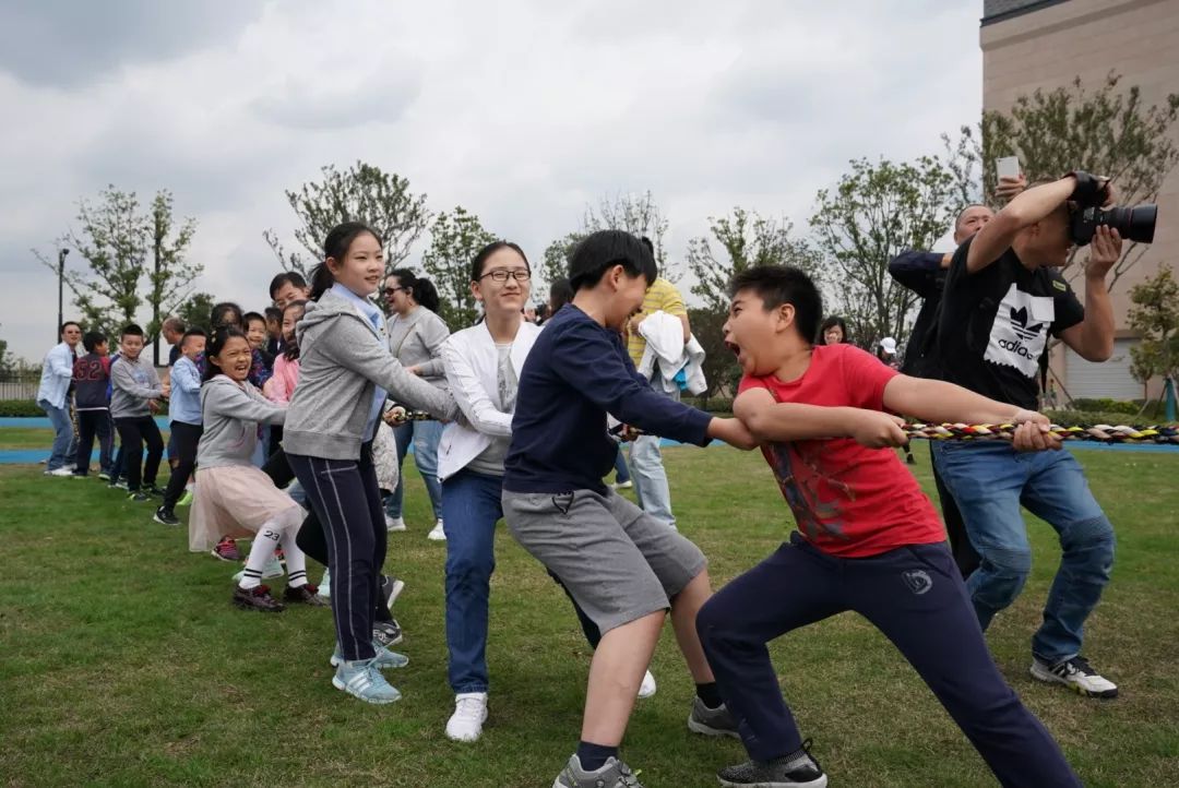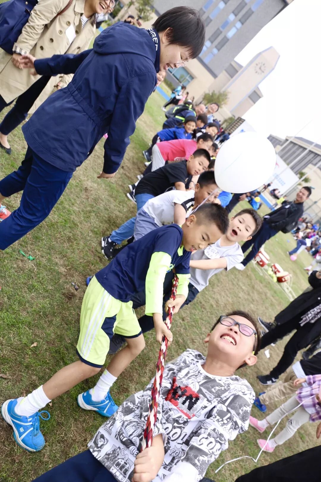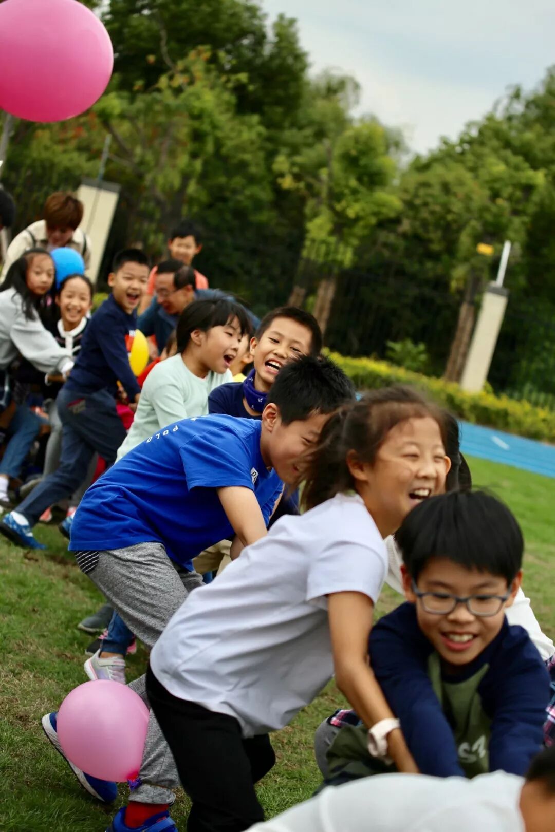 低年级的游戏以联谊为主,帮助各个家庭尽快地熟悉起来;高年级则玩起了篮球、拔河等运动类项目。在游戏中,老师和大小朋友们亲密合作,开怀的笑容洋溢在他们动人的脸庞上。
