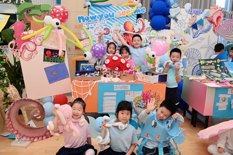 一年级四个班分别以雨林动物、海洋动物、极地动物和草原动物为主题,共选择了16种动物展开历时两个月的研究。萌宝们先是通过查阅书籍、上网研究等途径搜集各种动物的资料,了解它们的生长环境、生活习性,学校里的各科老师们又帮助孩子们创编动物舞蹈、绘制动物小报,最后形成今日的各个展台。