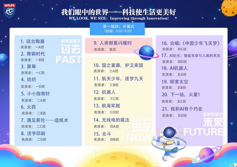 当指尖轻抚青铜鼎上流淌的时光纹路,当代码如星子般在荧幕上织就火星的红枫林,当童稚的清音与人工智能的理性在画布上交响,双语部迎新系列活动“我们眼中的世界——科技使生活更美好WE LOOK WE SEE:Improving through Innovation!”正以一场跨越“时空”的对话,为新的一年写下滚烫的注脚。