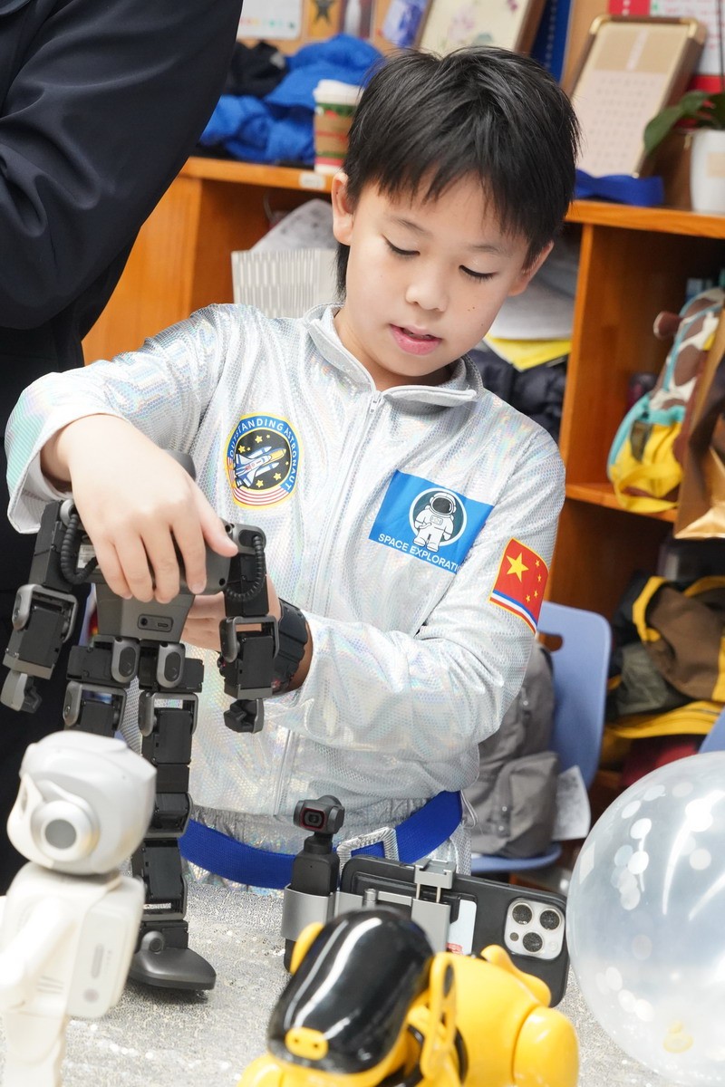 科技的温度,在“知”与“行”的交汇处灼灼生辉。三年级的“航母Style”点燃了少年的热血。孩子们模仿着舰载机起降的手势,与机器人默契协作,仿佛此刻便是未来的海军在碧波之上指挥风云。