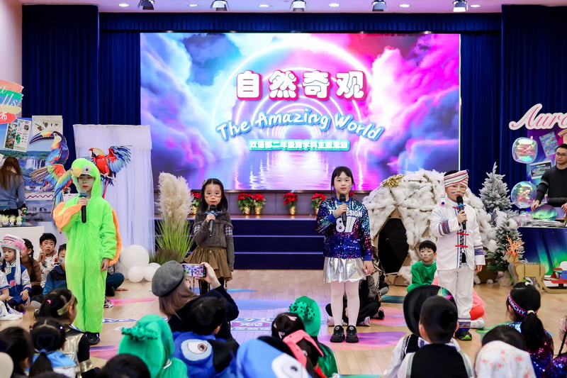 当童声揉碎羌寨童谣的悠扬旋律,当稚手轻展山河奇观的手绘长卷,当好奇的眼眸撞碎阿里山的云雾、映亮极光的彩带,上海世外小学双语部二年级“自然奇观(The Amazing World)”多学科主题活动正以一场跨越山海的探索,为学生们的成长画卷添上浓墨重彩的自然底色。