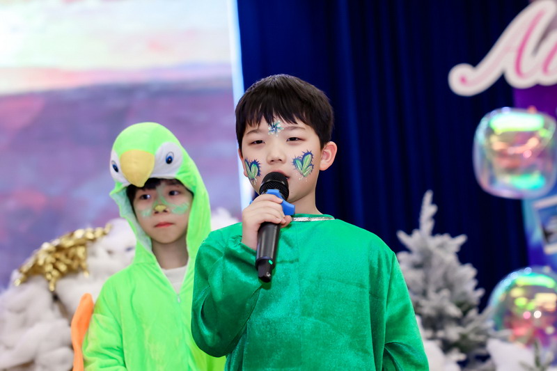 歌声落处,四位小主持人踩着童声的节拍登台,清亮的嗓音如拨响的银铃:“今天的体育馆熠熠生辉,我们仿佛置身童话的世界,周游于神秘的海洋,在世界各地的自然奇观里尽情徜徉。”全场的期待化作热烈的掌声,大家一起拉开“探索自然”的序幕。