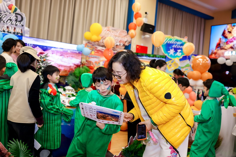 小研究员们各就各位,来宾们穿梭于各个展台,或驻足端详精巧的自然模型,或与学生展开趣味问答。“为什么极光会有不同颜色?”“乌尤尼盐湖为什么像镜子?”面对一个个问题,学生应答自如,童稚的讲解里满是对自然的好奇与探索欲,体育馆内的每一寸空间,都洋溢着探索的热情与山海的诗意。