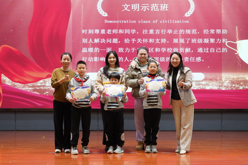 最让孩子们期待的是颁奖环节。“学期阳光少年”笑容灿烂,像清晨的第一缕光;“最大进步少年”站在台上,眼里闪着光,那是被看见、被肯定的喜悦;“文明班”“示范班”的奖状,是全班一起努力换来的。每一份荣誉,都是日复一日地积累,是对每一个努力过的身影,最真诚的回应。今年的奖项里,还多了几个特别的名字:“节节高升奖”“持续闪光奖”“金点子工坊”等等。这些班级,用各自的努力书写着各自的精彩,成为校园里不一样的风景。