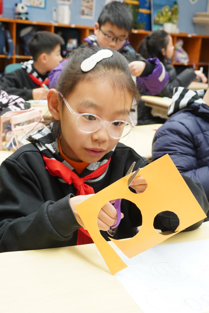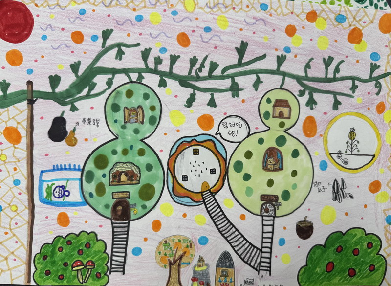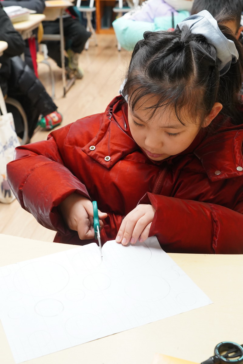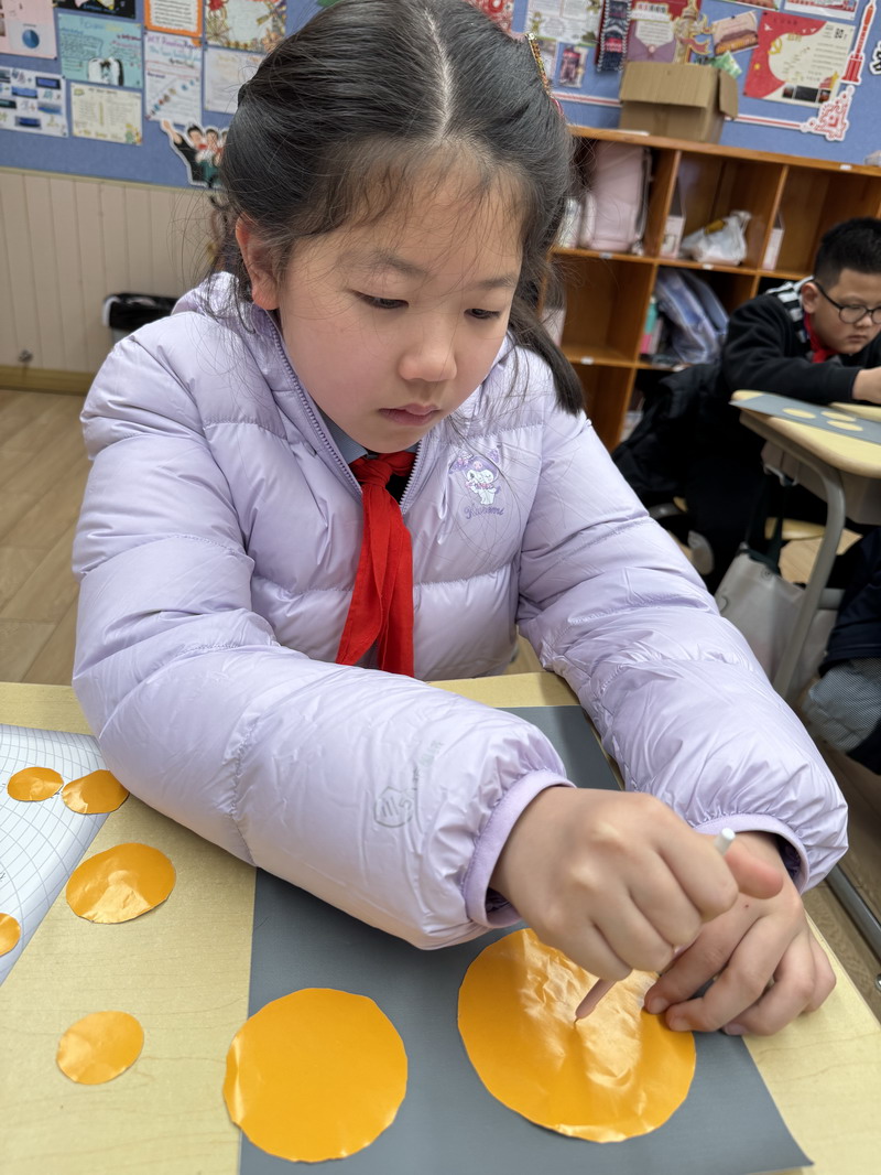 在随后的美术课堂上,孩子们从观察生活中的圆形物体,到尝试用不同工具画圆、剪圆、叠圆;从构思画面结构,到反复调整色彩与节奏;每一幅作品,都是孩子们在课堂中一步步完成的学习成果。