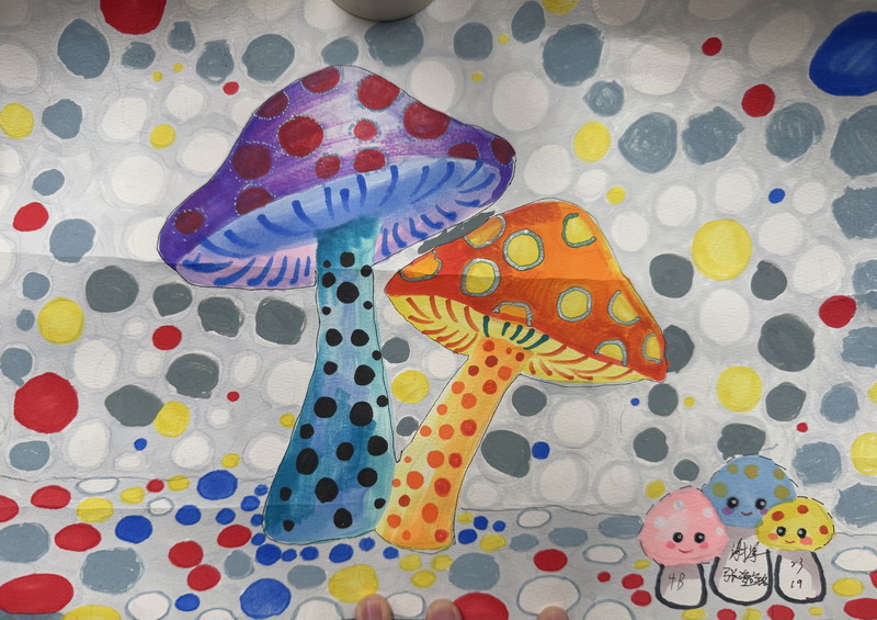 从一个简单的几何图形出发,孩子们走过了观察、测量、制作、设计与创作的完整学习过程;在数学的严谨推理中理解结构,在美术的自由表达中释放想象。一条条半径与直径,连接起理性思考与感性创造;一枚枚圆点与色块,汇聚成属于童年的艺术语言。