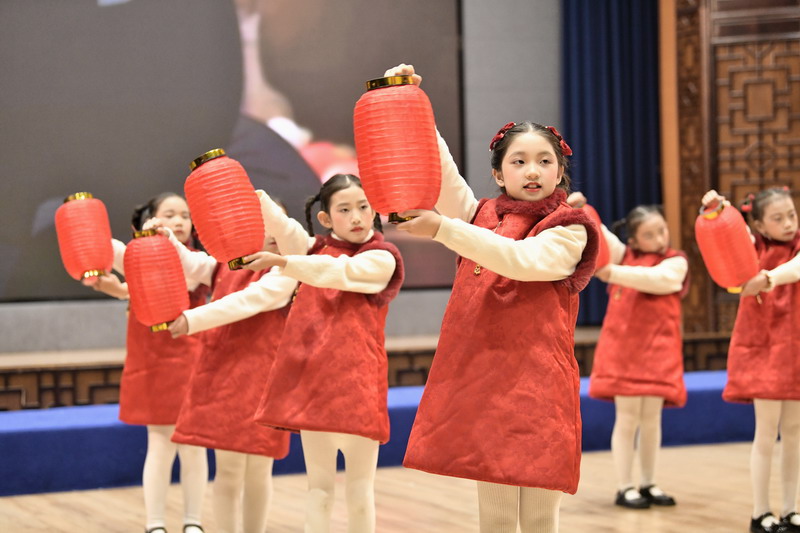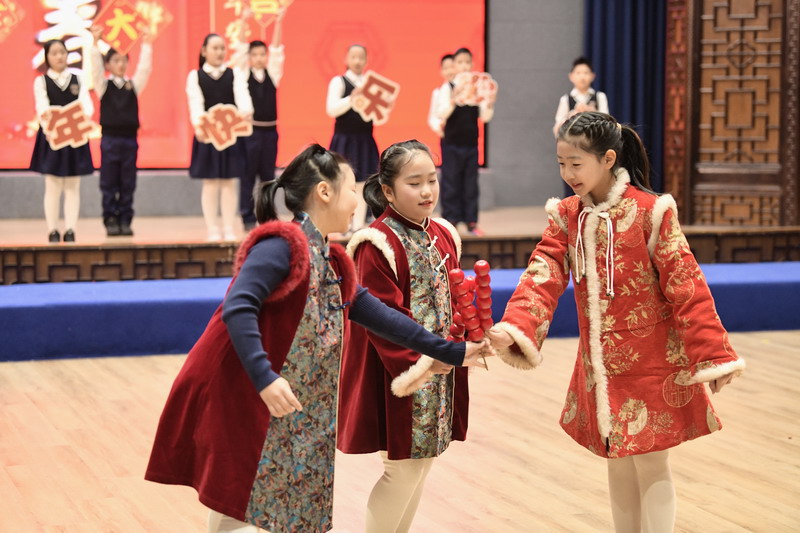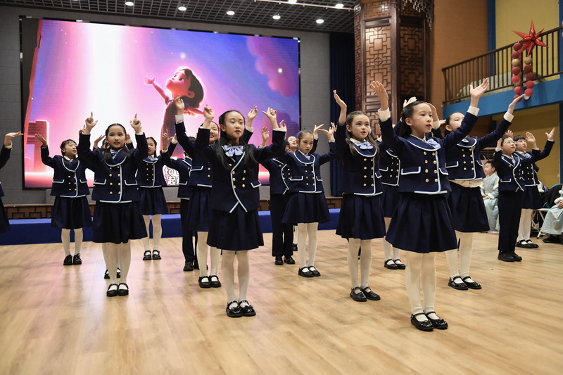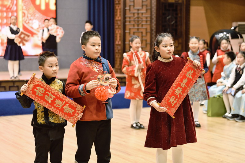活动伊始,四位主持人闪亮登场,以真挚的语言回顾了过去一年的成长点滴,并对莅临现场的校长与老师们表示热烈欢迎。四(1)班同学带来的经典诗词表演《元日》率先点燃全场,孩子们身着节日盛装,以饱满的演绎传递出浓浓的年味,为整场活动拉开精彩序幕。