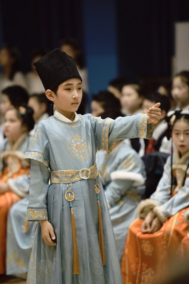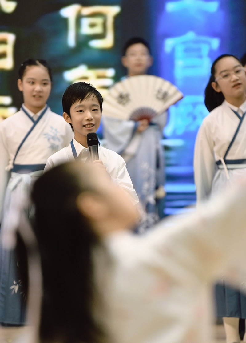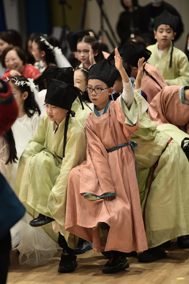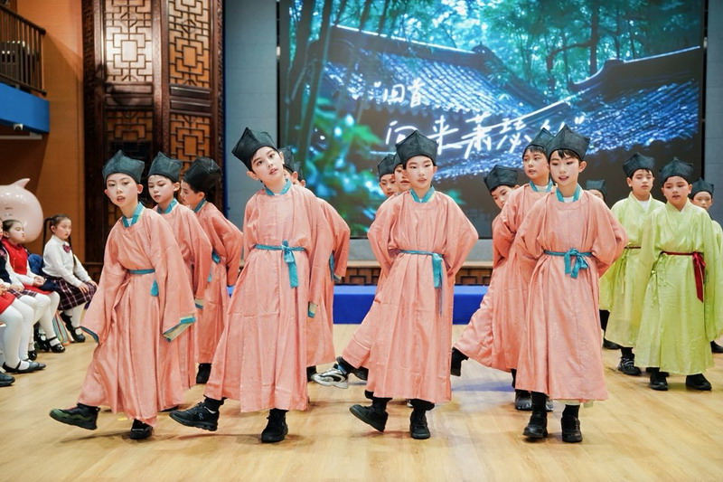 四(2)班同学演绎的《24节气歌》,以优美韵律展现时节流转之美,让全场沉浸在传统文化的隽永韵味中。