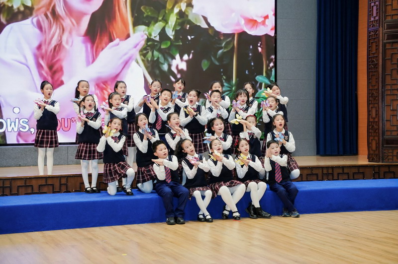 歌声传情,心意流淌。同学们联袂献上英语歌曲《Let It Grow》《Proud of You》,清澈的嗓音中满载阳光与希望,表达了对校园与师长的深深感恩。