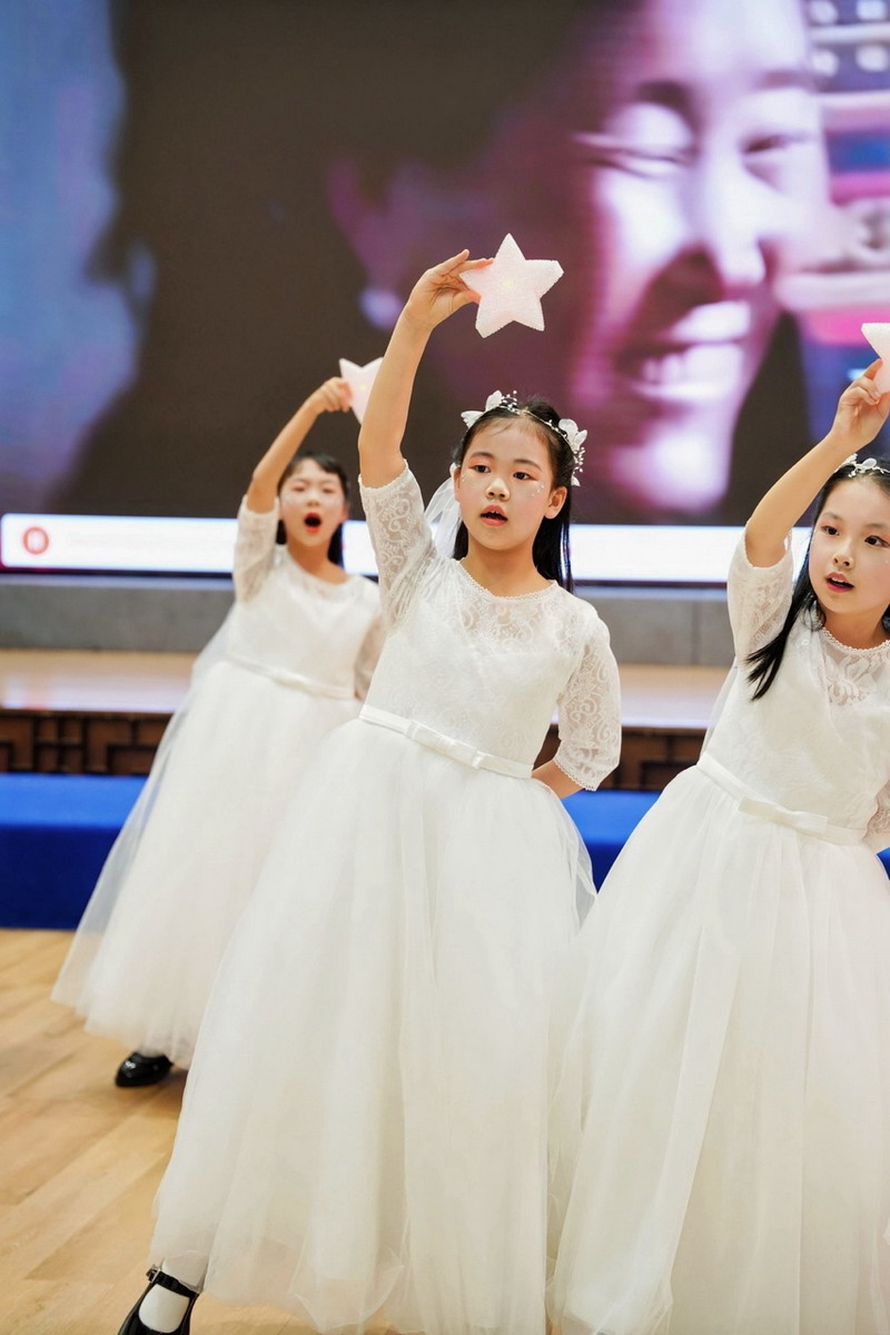 压轴节目由四(3)班呈现《一蓑烟雨任平生》、《如愿》,孩子们以坚定信念与饱满热情,诠释对未来的憧憬与无畏前行的勇气,赢得满堂喝彩。