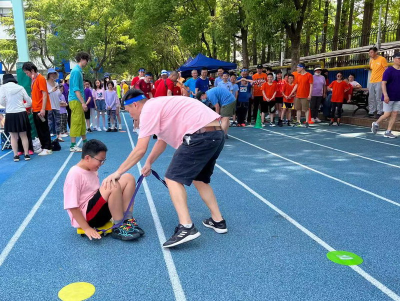 6月2日,2022学年第二学期融合部运动会开启。本次运动会结合“父亲节”,邀请学生爸爸参加。孩子们和家长们身穿红色、黄色、紫色和蓝色运动服,他们分别代表“龙队”、“虎队”、“凤队”和“熊猫队为团队而“战”!