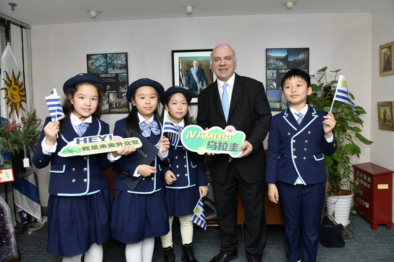 这学期,上海市世外小学国际部的孩子们多了一个新课后社团——西班牙语社团。正是因为这个联结,他们获得了一次特别的邀请:走进乌拉圭东岸共和国驻上海总领事馆,成为一天的“小小外交官”。