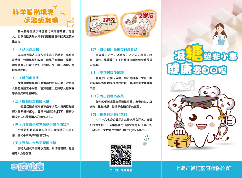 糖分为非游离糖和游离糖。非游离糖对身体危害较小,是指天然存在于新鲜水果中的果糖、蔬菜中的糖和奶类中的乳糖及谷薯类中的淀粉。游离糖对身体危害较大,常分为两种,一种是存在于纯果汁、浓缩果汁及蜂蜜中的糖,尽管其常给人以“天然”和“健康”的印象,但也是游离糖。由于完整水果中的糖由一层植物细胞壁包裹,消化过程更缓慢,所以新鲜完整的水果不易致龋,但水果制成果汁后成为游离糖,致龋性就会增加。另一种游离糖是指在食品生产、制备、加工中,添加到食品中的蔗糖、葡萄糖和果糖及糖浆,也称添加糖。