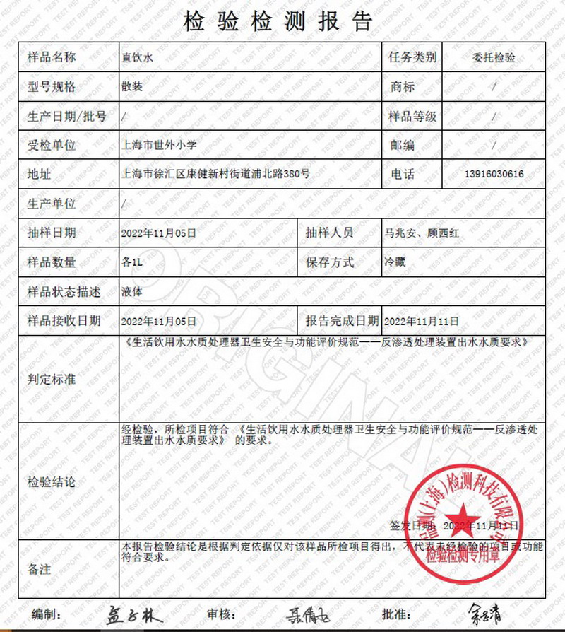 2022年11月水质报告