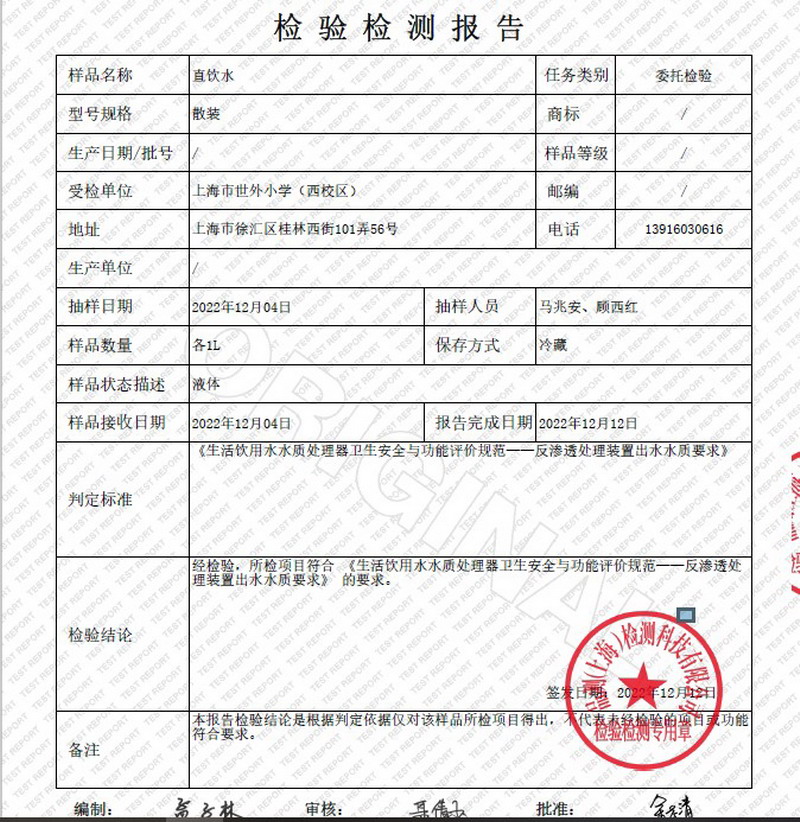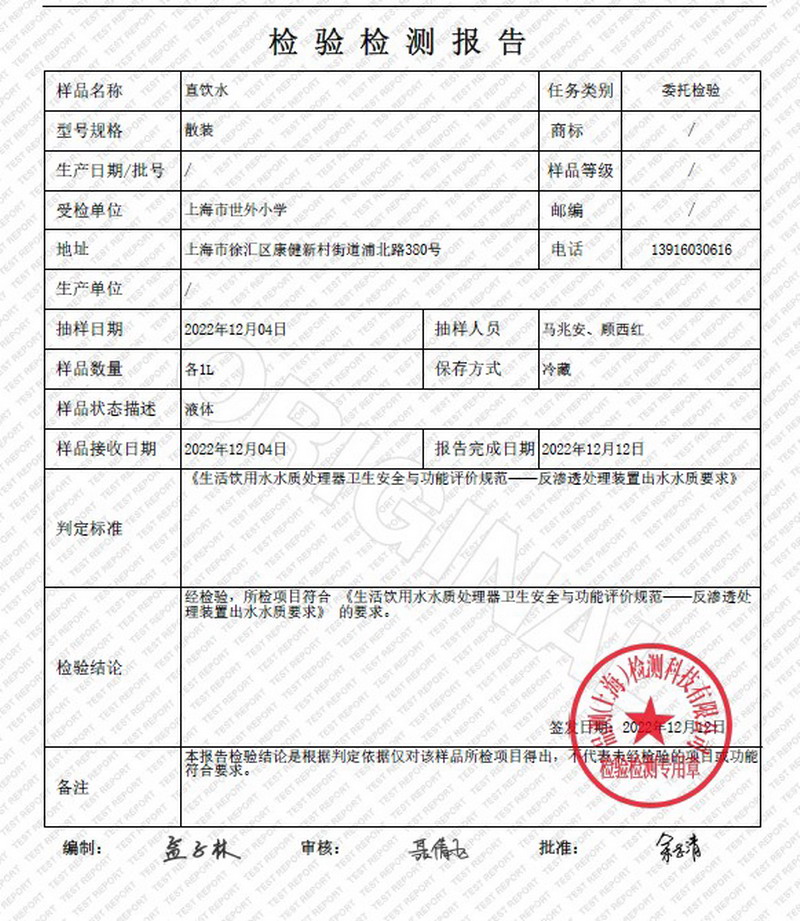 2022年12月水质报告