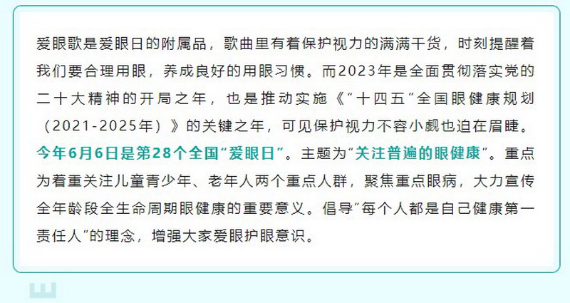 “关注普遍的眼健康”——第28个全国“爱眼日