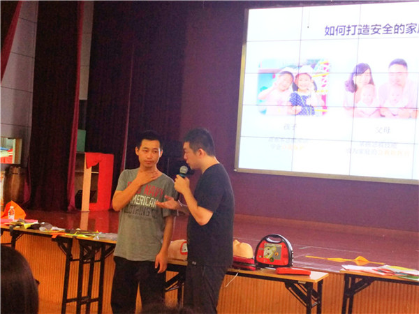 "天使宝贝"安全课堂的翟教官担任本次培训主讲,讲解内容包括成人及儿童心肺复苏、外伤止血及大出血处置、骨折、扭伤低血糖的急症处置、高温中暑的急症处置、成人及儿童气道梗阻、卒中处置方式、如何高效拨打120和日常应急包介绍。