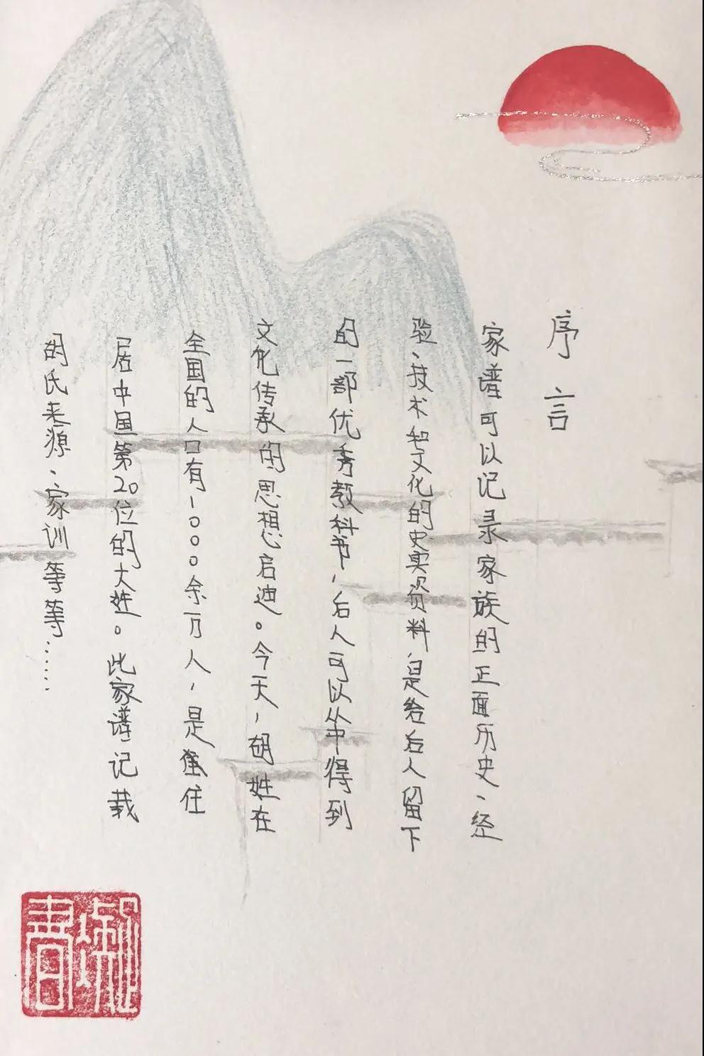 通过制作家谱,引领同姓宗亲寻根问祖,也让孩子们知道自己的根系所在。孩子们这次做家谱也是从序言、姓氏来源、世系表、家训或人物故事等几个部分组成。