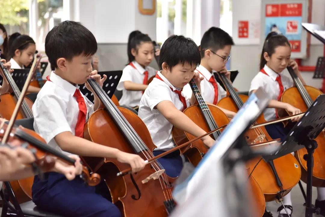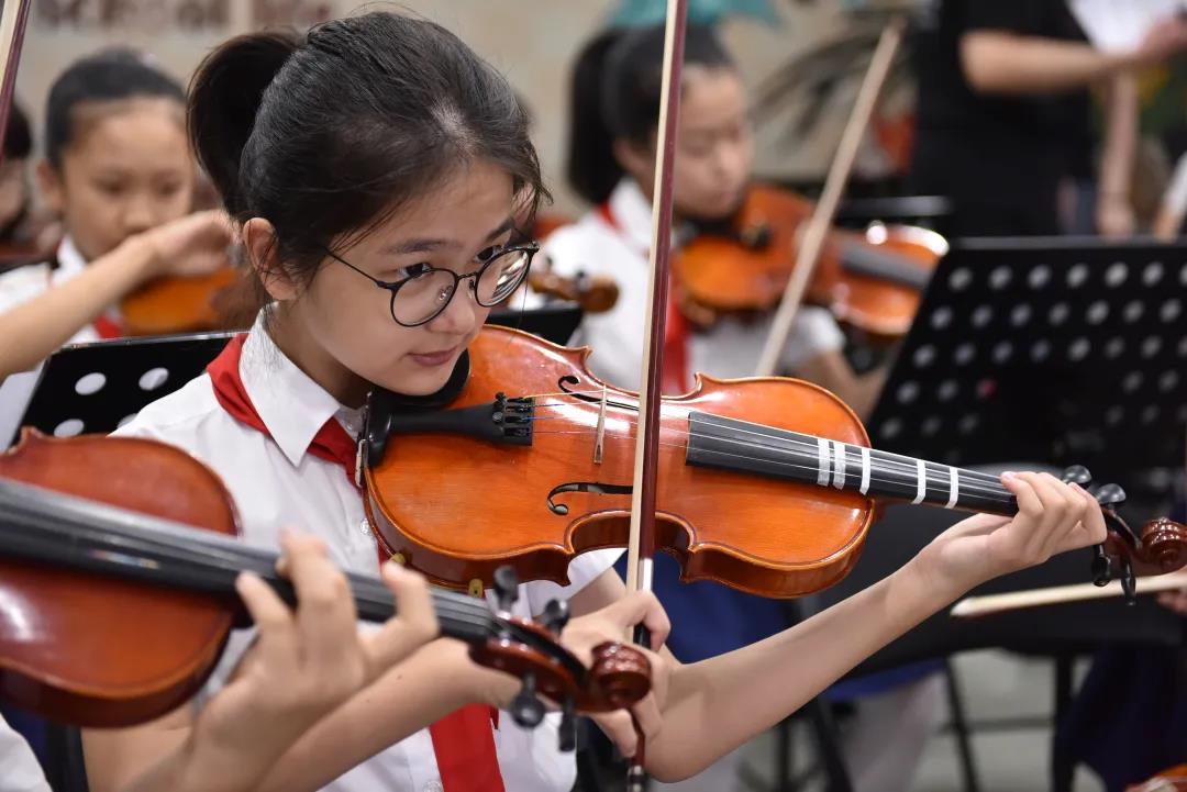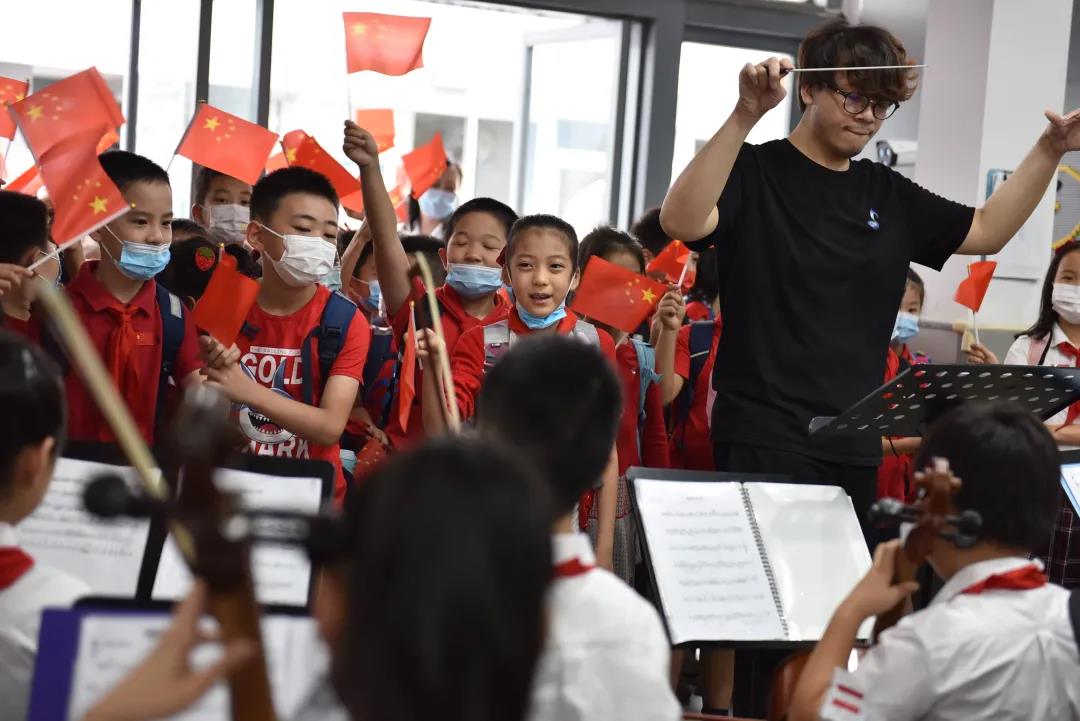 9月30日清晨,当世外境内部的同学们踏进校门,就看到门厅里坐着全体管弦乐队的学生们。他们在张宁敏老师的指挥下奏响《我和我的祖国》弦乐表演。学校旨在通过乐器演奏的形式营造良国庆良好氛围,开展爱国主义教育,弘扬社会主义核心价值观。