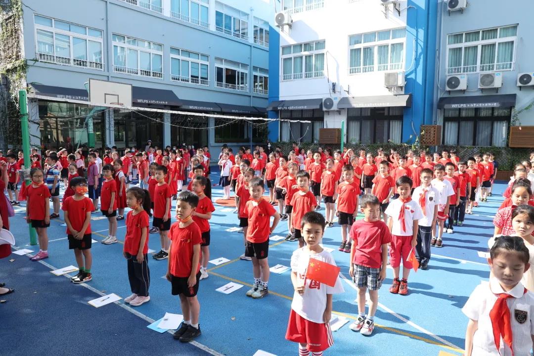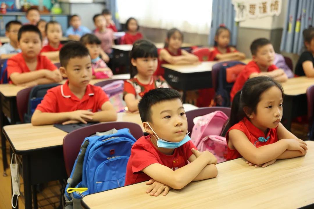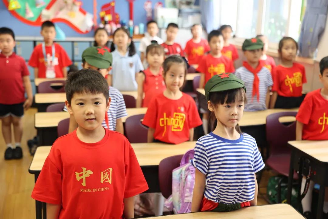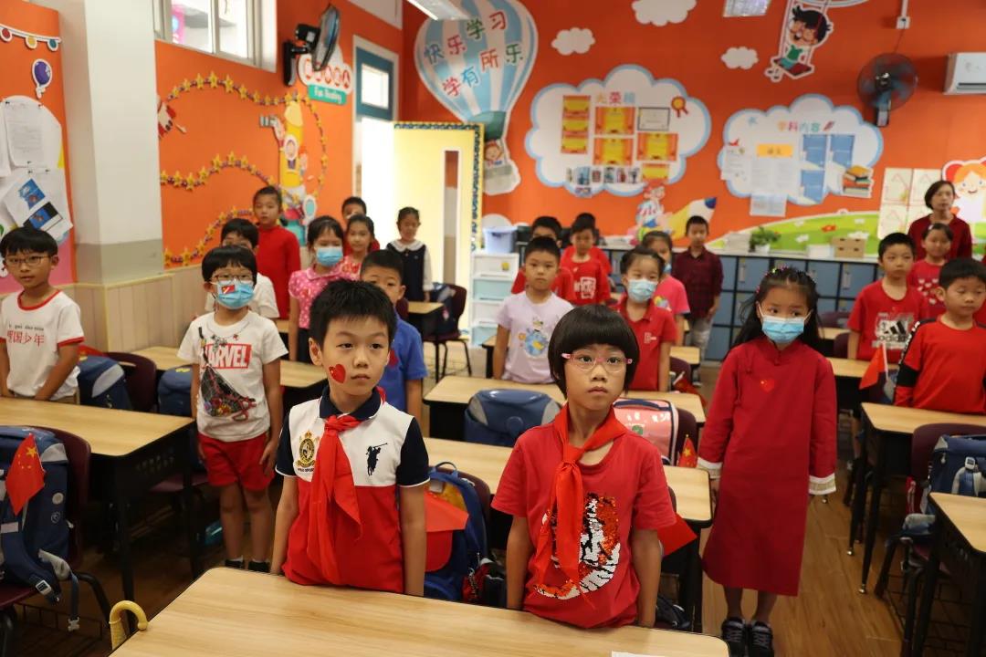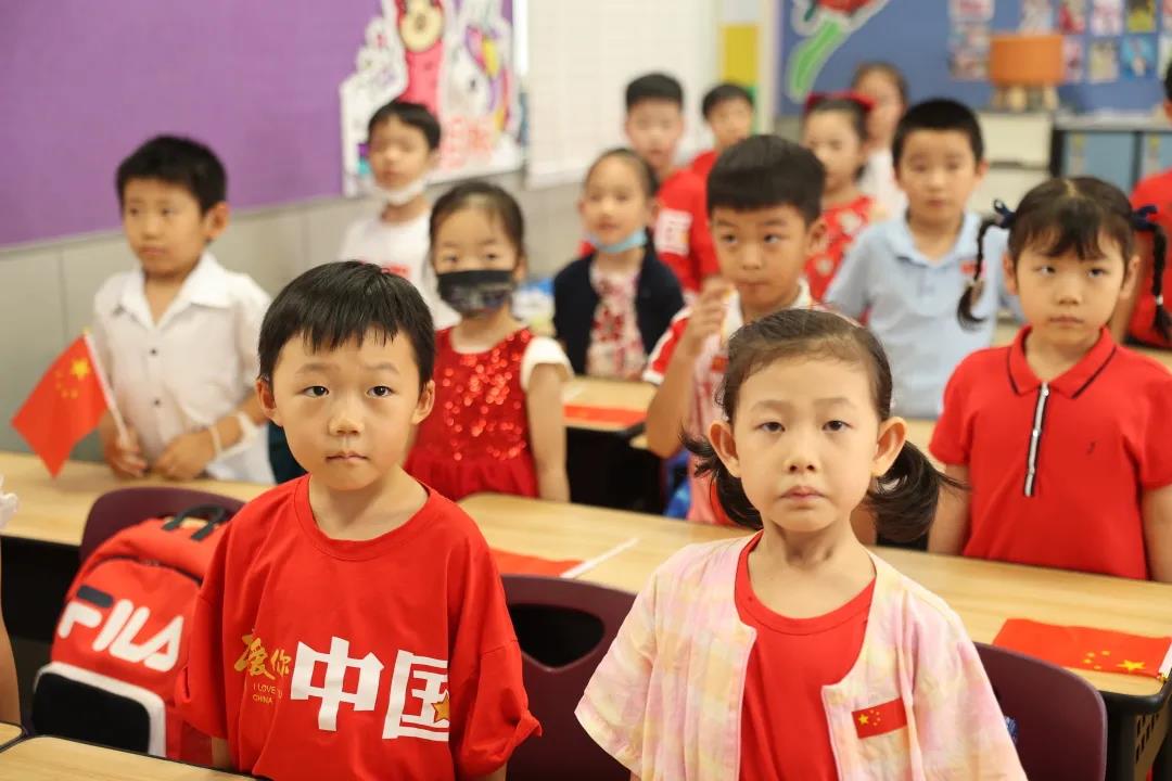 境内部各年级开展了“请党放心 强国有我”的主题队课。队课中,由团员代表瞿佳乐老师,向大家讲述了《国歌的故事》,探寻了国歌创作、发行的历程,帮助队员们走近国歌,了解国歌背后的故事。接着,大队辅导员Dora老师通过展示相关史料,讲述了《义勇军进行曲》成为代国歌的故事,认真解读国歌歌词,使队员们了解到国歌时刻提醒着我们勿忘国耻、砥砺前行。最后,队员们一起观看了建党100周年大会上由少先队员代表和共青团代表带来的朗诵《请党放心 强国有我》,在彭拜的心情中感受爱国之情。
