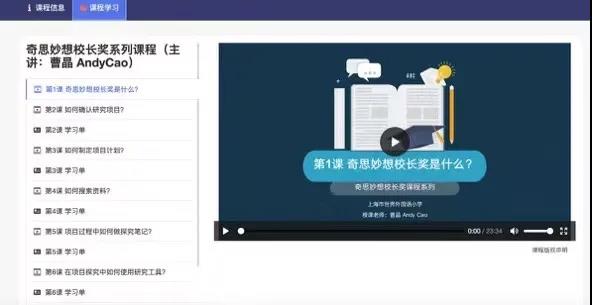 学生们的项目探究始于暑假前。为了让学生有更好的研究方法和策略,学校还专门制作了奇思妙想校长奖的在线课程,为学生研究提供思路、工具和支架。