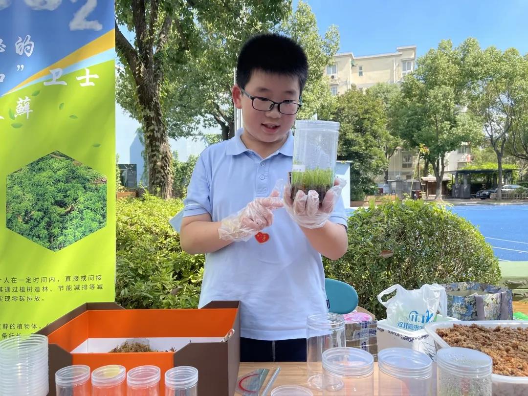 比如彭博同学培植的“碳中和泥炭苔藓”。他在假期中对如何通过植物造林、还有解决生活中实际小问题的一些小发明和小设计。比如有“微阻力的舞蹈鞋”、“自动拖地机”、“脊椎弯曲提醒器”、“防油菜盘”、“肥皂粉碎机”、“自动饮水机”等等。下面Madam重点向大家介绍几个解决生活中实际问题的奇思妙想。节能减排等实现二氧化碳总量互相抵消和零碳排放产生兴趣,利用暑假空余时间,在大学的生物实验站找到了一种具有强力吸收二氧化碳能力又较易种植的藓类植物——泥炭藓,并录制了种植方法的视频,目的是把“零碳排放”的环保理念科普给同学们,并让大家通过学会种植泥炭藓,以实际行动爱护人类的共同家园。当天小彭的展台前挤满了小朋友,大家都带了点泥碳藓准备回家尝试培养。