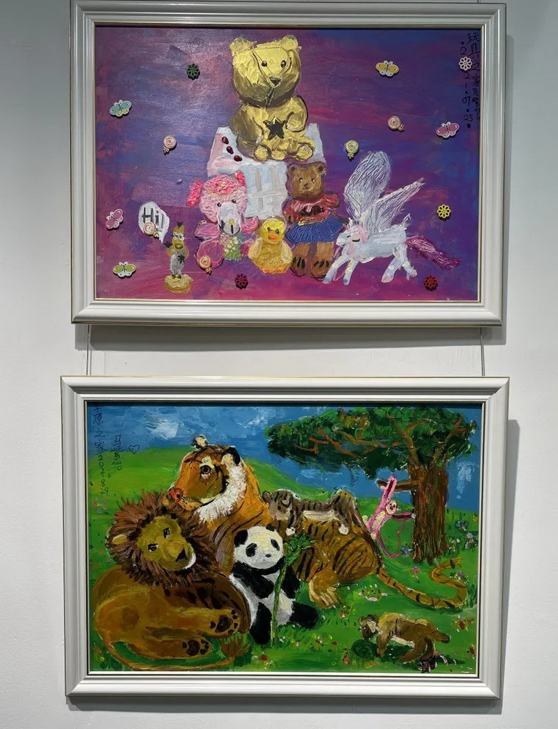 除了动物,还有人物、风景、静物、年画等等,其中有世外29周年校庆时创作的《感恩》,还有《世外小花园》、《袁爷爷的梦》等等,都引起了同学热烈的反响,大家都非常喜欢。