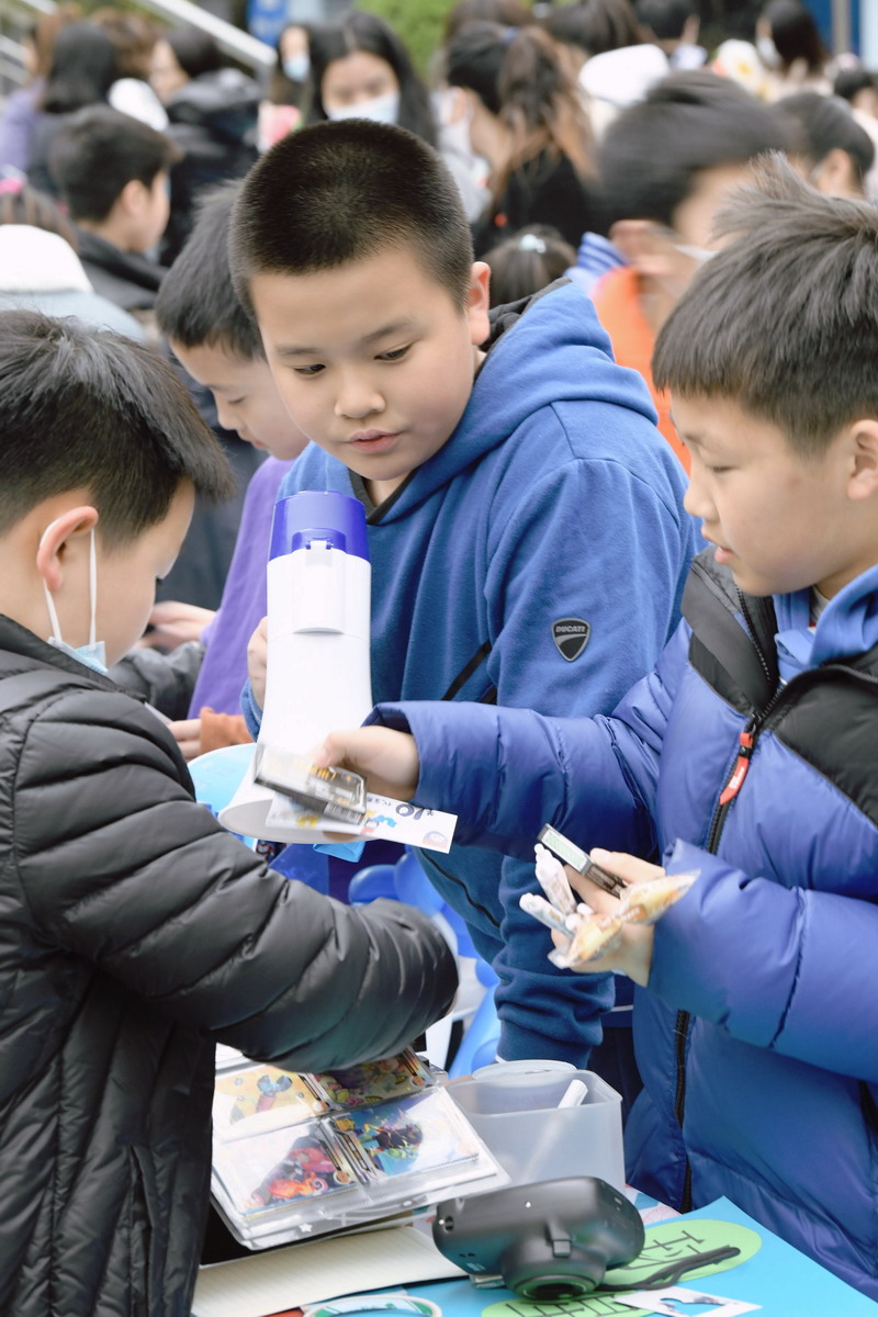 爱心义卖的场面可谓是人山人海、热闹非凡。商铺前,络绎不绝是摩肩接踵的人流;桌面上,目不暇接是琳琅满目的商品。每个班级的学生们分A、B两角轮流担当买家和卖家。他们不光把自己的摊位打理得井井有条,而且还装扮得靓丽夺目,精心绘制的摊位海报和朗朗上口的宣传标语让人眼前一亮。各个小摊别具特色,有益智书籍、实用文具、趣味玩具、精美饰品、特色手工等等。