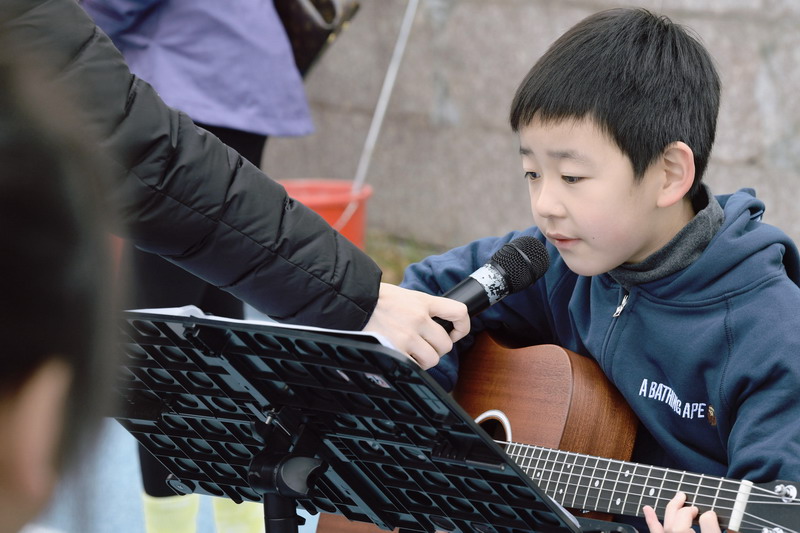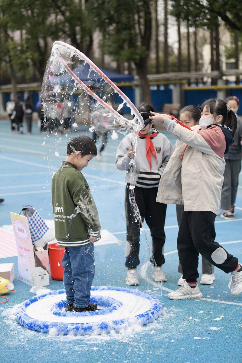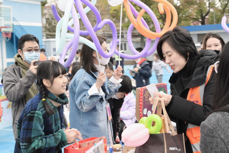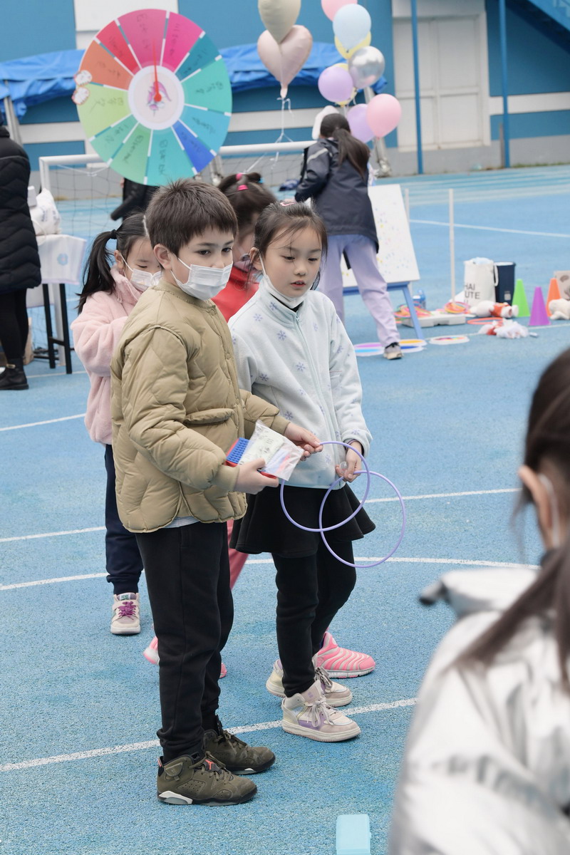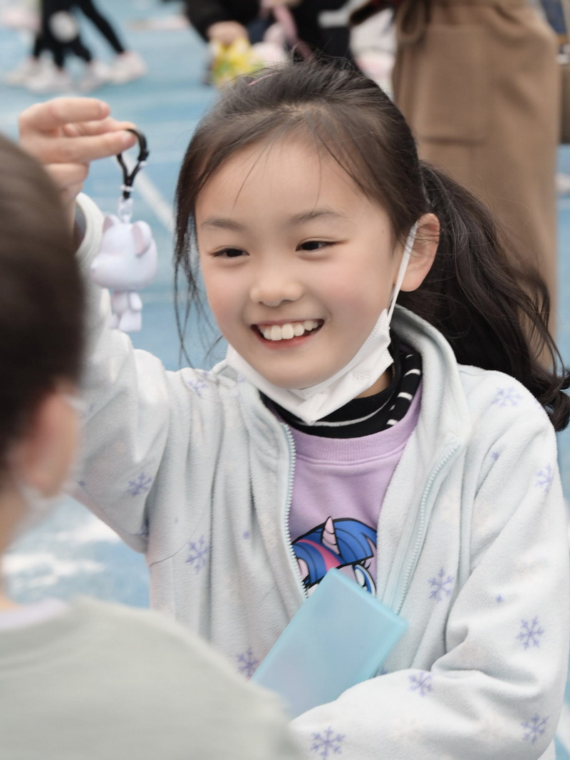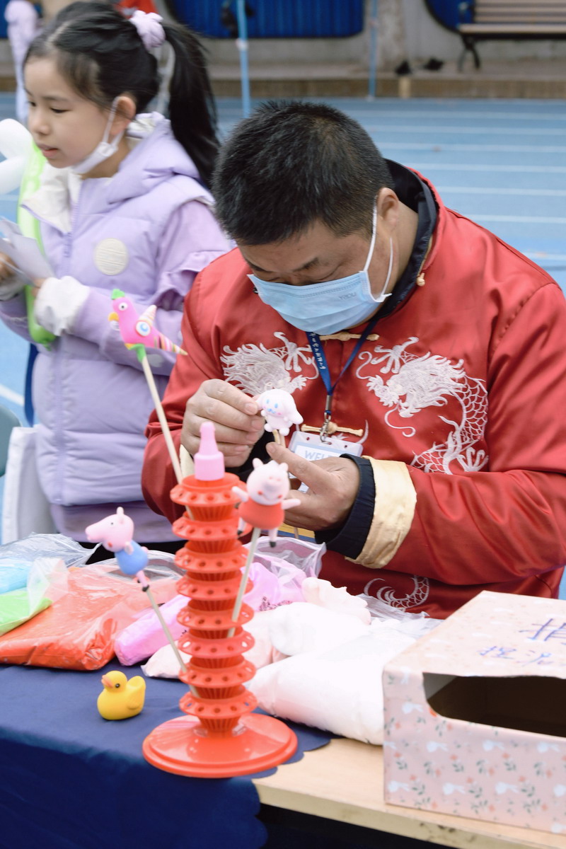 除了买卖之外,还有现场素描画像、捏面人、吊娃娃、开赛车、套圈圈等各类游艺活动。舞台上,还有每班孩子们准备的精彩演出。