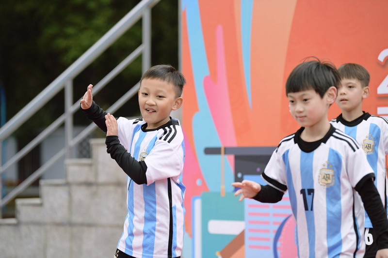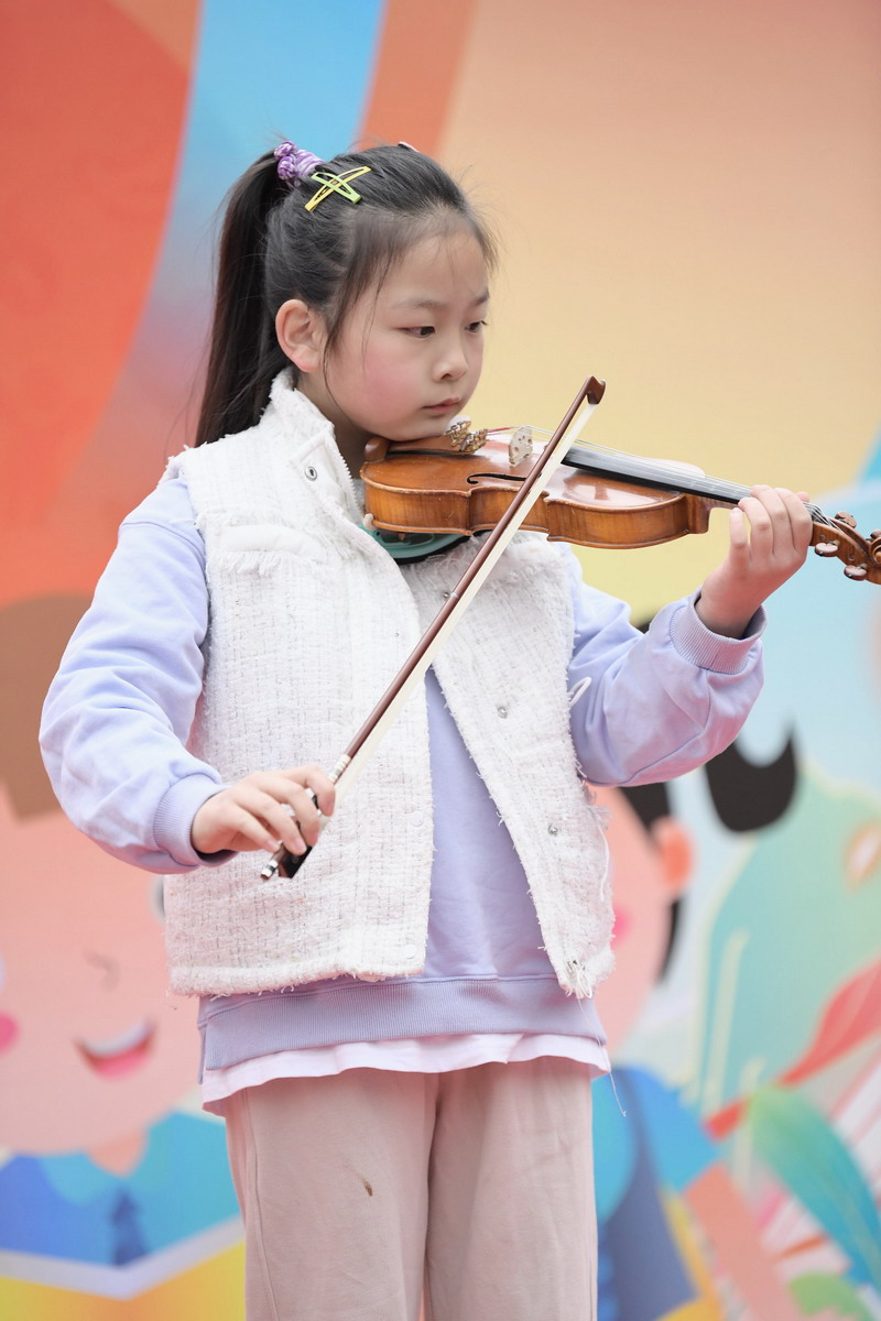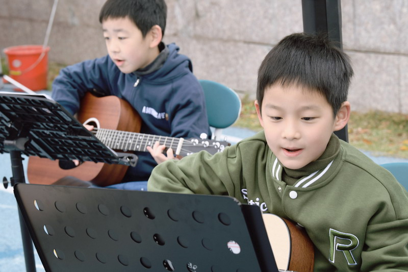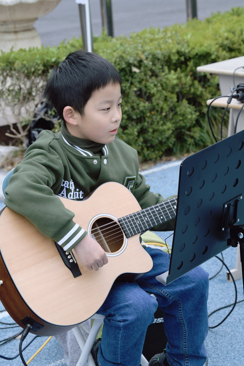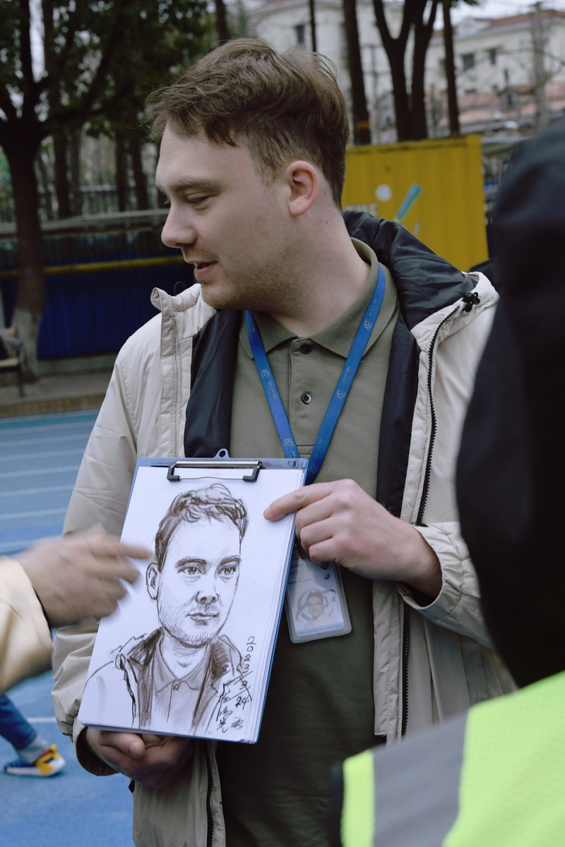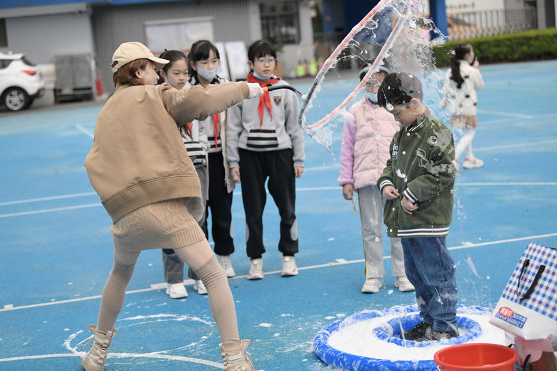 除了买卖之外,还有现场素描画像、捏面人、吊娃娃、开赛车、套圈圈等各类游艺活动。舞台上,还有每班孩子们准备的精彩演出。