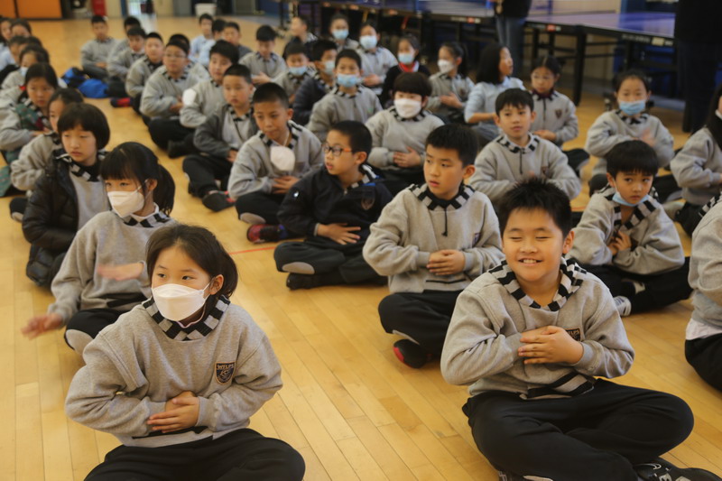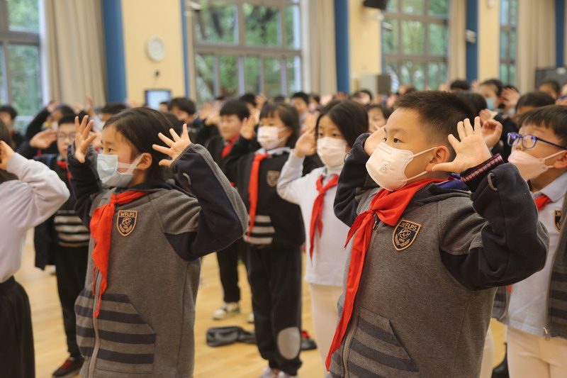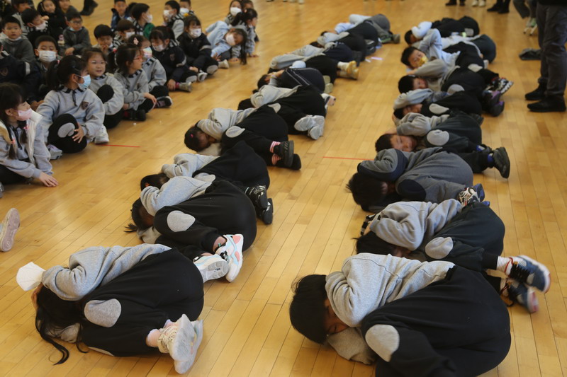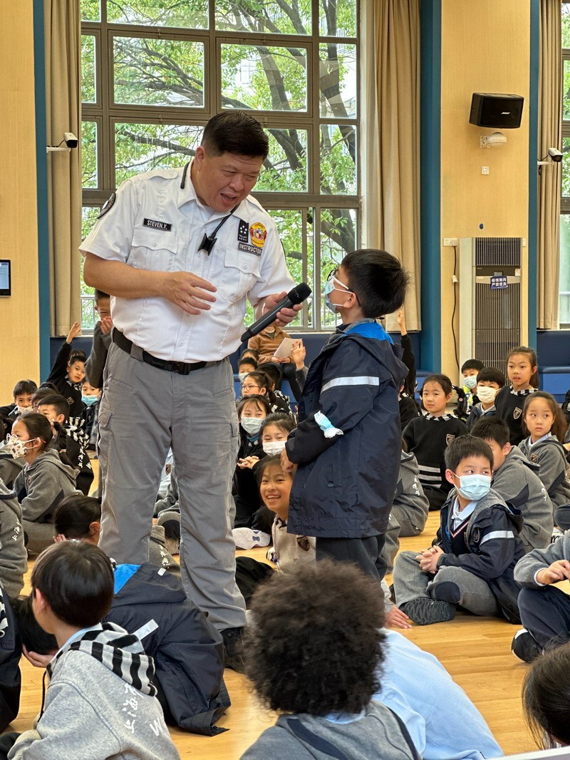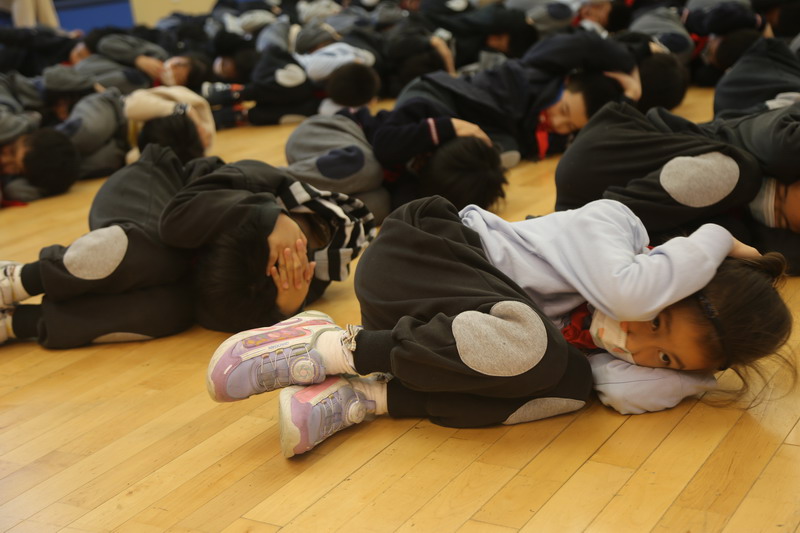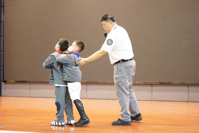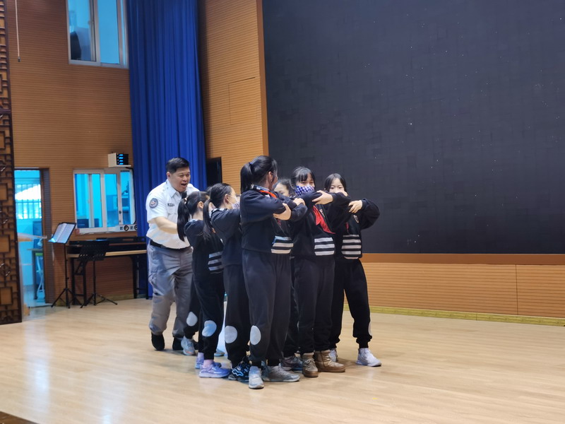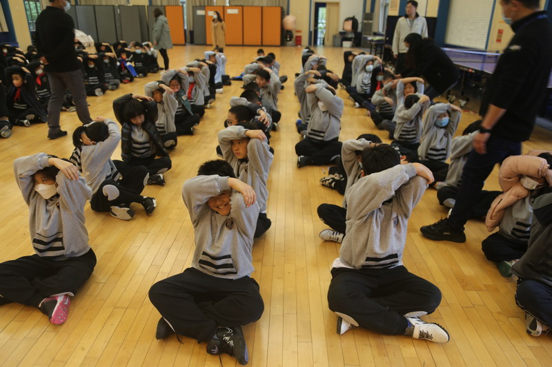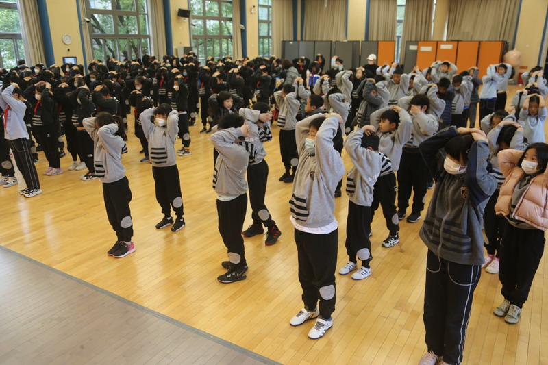 “被掩埋或遇到危险时,怎样向外界发出信号求救?”、“高空抛物的行为是对与错?高空物品掉落时,应该怎样做出反应?”低年级同学们在教官的带领下,学习了在遇到被掩埋或遇到危险时,怎样发出国际求救信号进行求救。高空物品掉落躲不掉的情况下,通过前抱,左抱,右抱来保护自己的头部,教官通过拍打小游戏来告知同学手部可以帮助自己保护好最核心的头部。