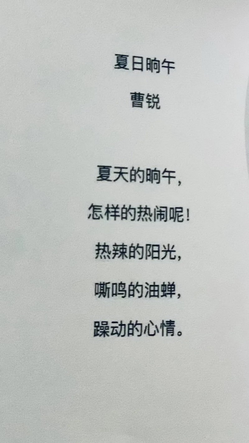四年级语文诗歌单元学习后,孩子们学着用诗歌的形式来记录生活,有的娃写一首,有的娃天天写一首,有了自己的小诗集,这里,张校长向大家介绍曹锐同学的几首小诗。