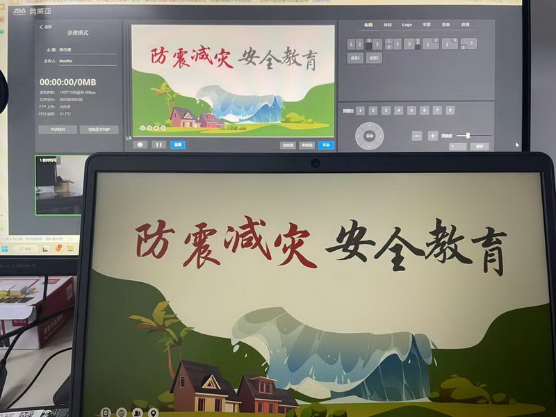 活动开始前的安全广播中,蒲老师就地震发生前有何征兆和地震时应该注意的事项以及如何在地震中逃生等内容向学生们作了详细讲解。